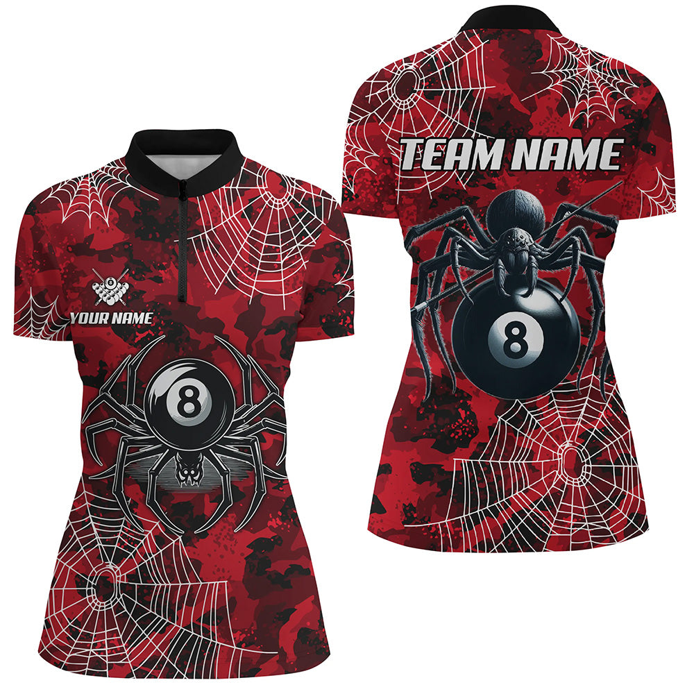 Red Camo Billiard Spider Cobweb Custom Women Polo & Quarter-Zip Shirts, Unique 8 Ball Pool Jerseys TDM1766