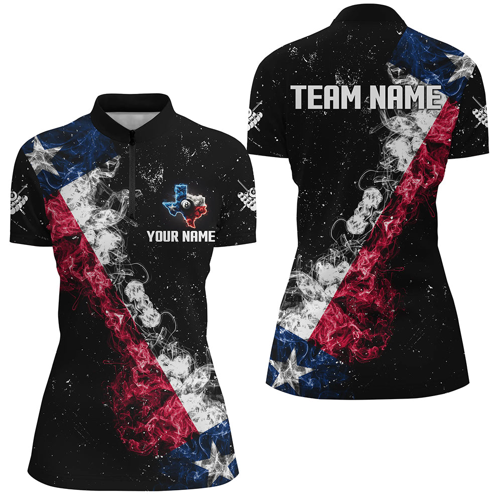 Personalized Black Grunge Texas Flag Smoke Billiard Shirt For Women, Patriotic Texas Billiard Jersey TDM3193