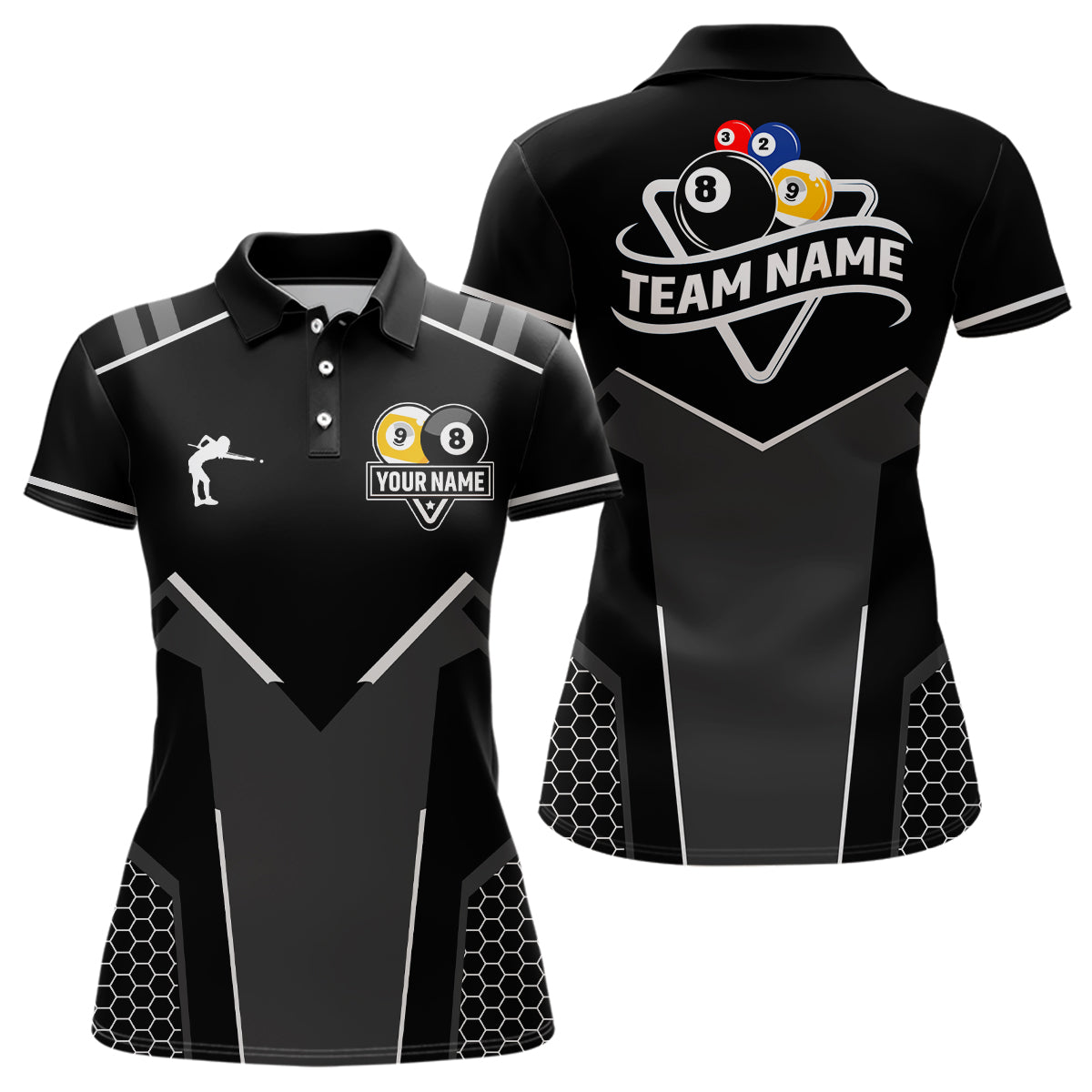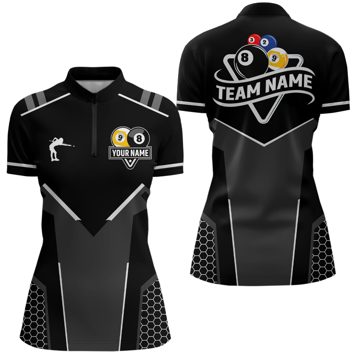 Personalized 8 Ball & 9 Ball Pool Billiard Polo, 1/4 Zip For Women Custom Team Billiard Jersey |White TDM3547