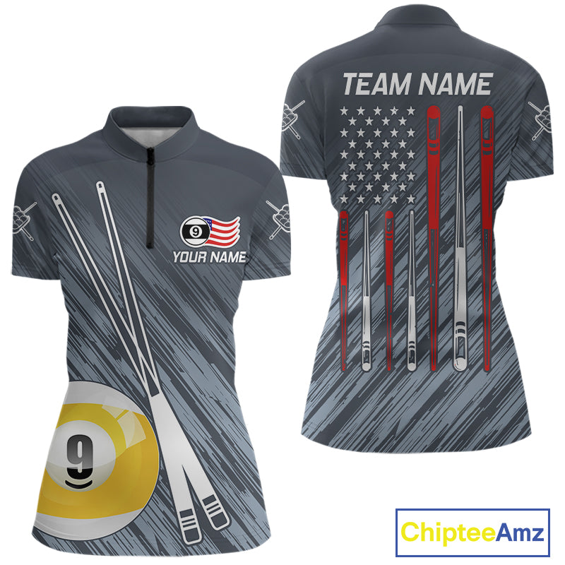 Personalized Billiard US Flag 9 Ball Pool Shirt For Women, Billiard Team Jersey Polo & 1/4 Zip TDM5218