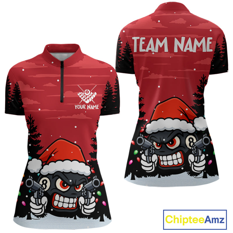 Personalized Red Christmas Santa 8 Ball Pool Billiard Shirts For Women, Funny Xmas Billiard Jerseys TDM5221