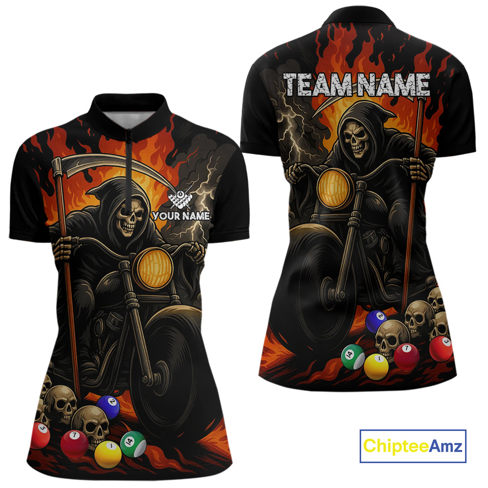 Personalized Grim Reaper Motorcycle Billiards Shirt For Women Custom Skull Billiard Team Jersey TDM5253