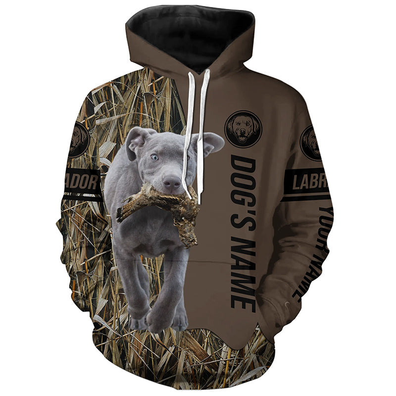 Silver Labrador Retriever Hunting dog customized Name Shirt, camo and brown color FSD4678