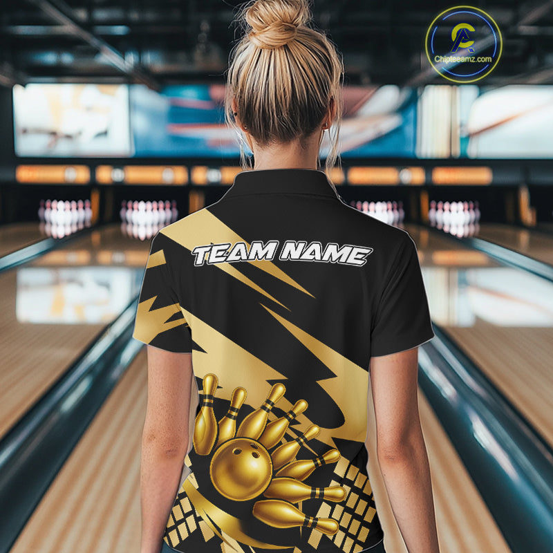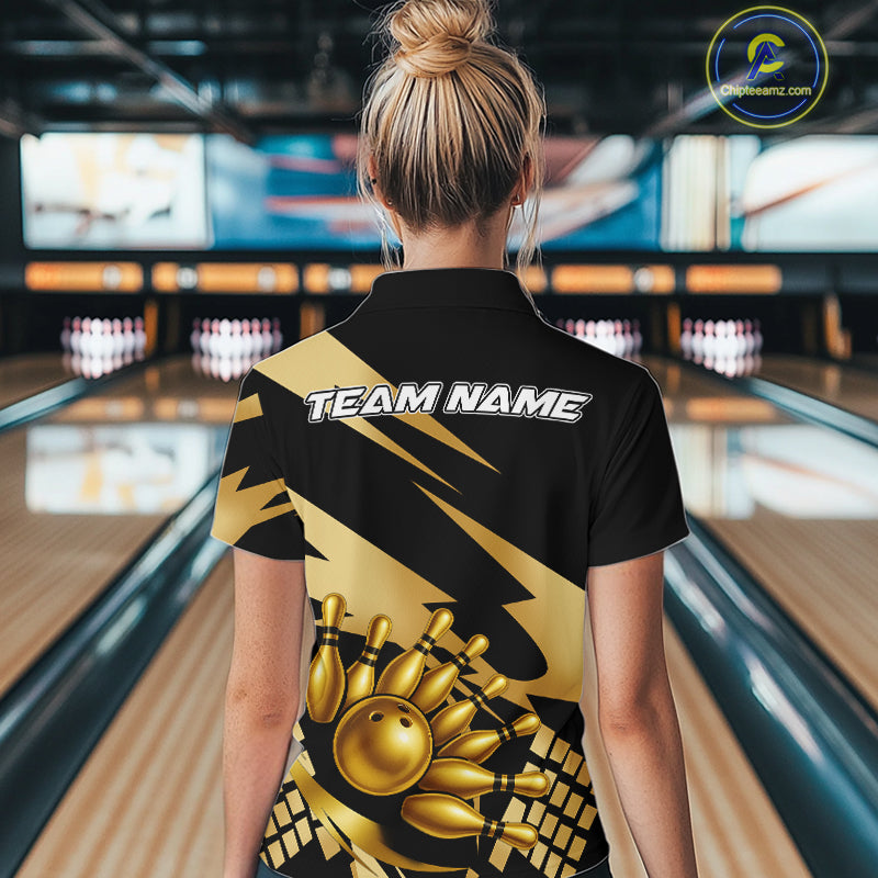 Black and Gold Bowling Polo, Quarter Zip Shirt For Women Custom Team bowling jersey, gift for bowlers NQS11069