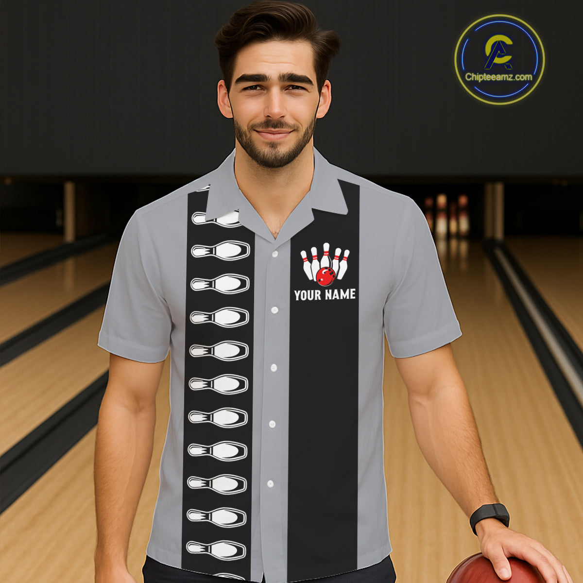Black and Gray Retro Bowling Hawaiian Shirts Custom Vintage Bowling Team Button up shirt NQS11156