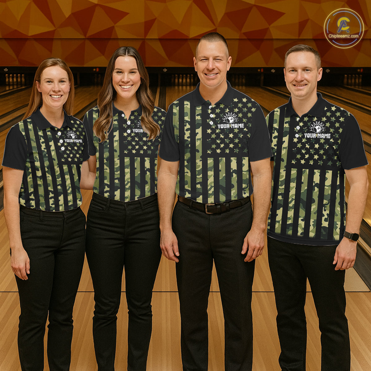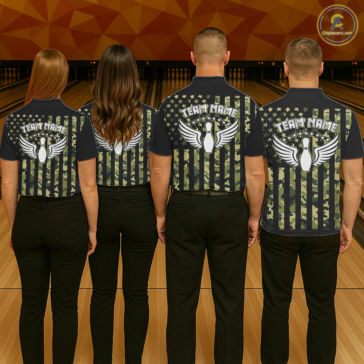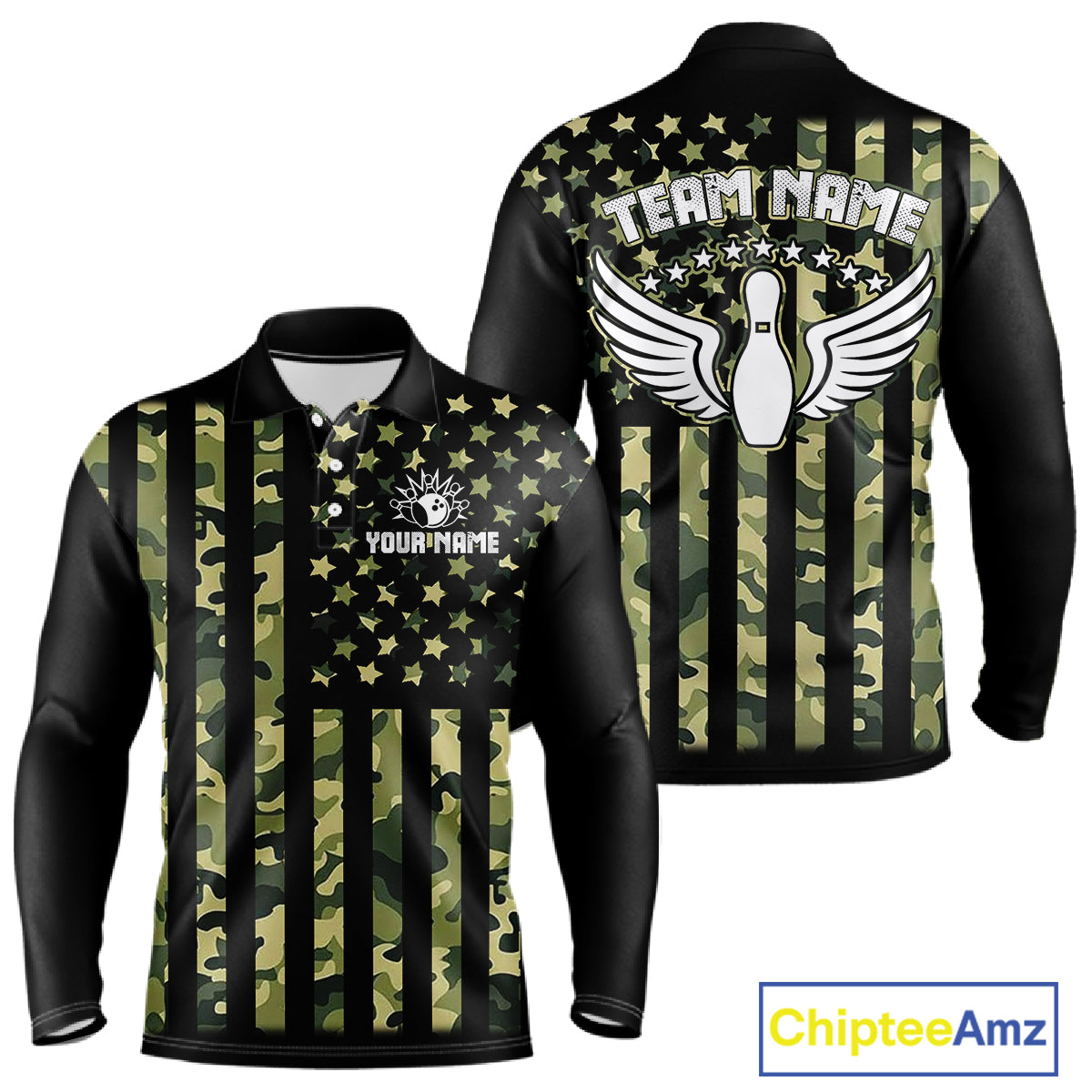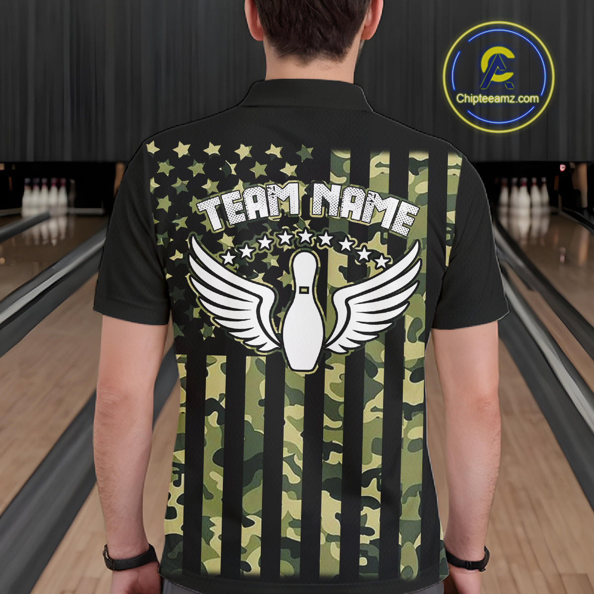 Black and Green Camo American Flag Bowling Shirts For Men Custom patriotic Bowling Team Jerseys NQS11177
