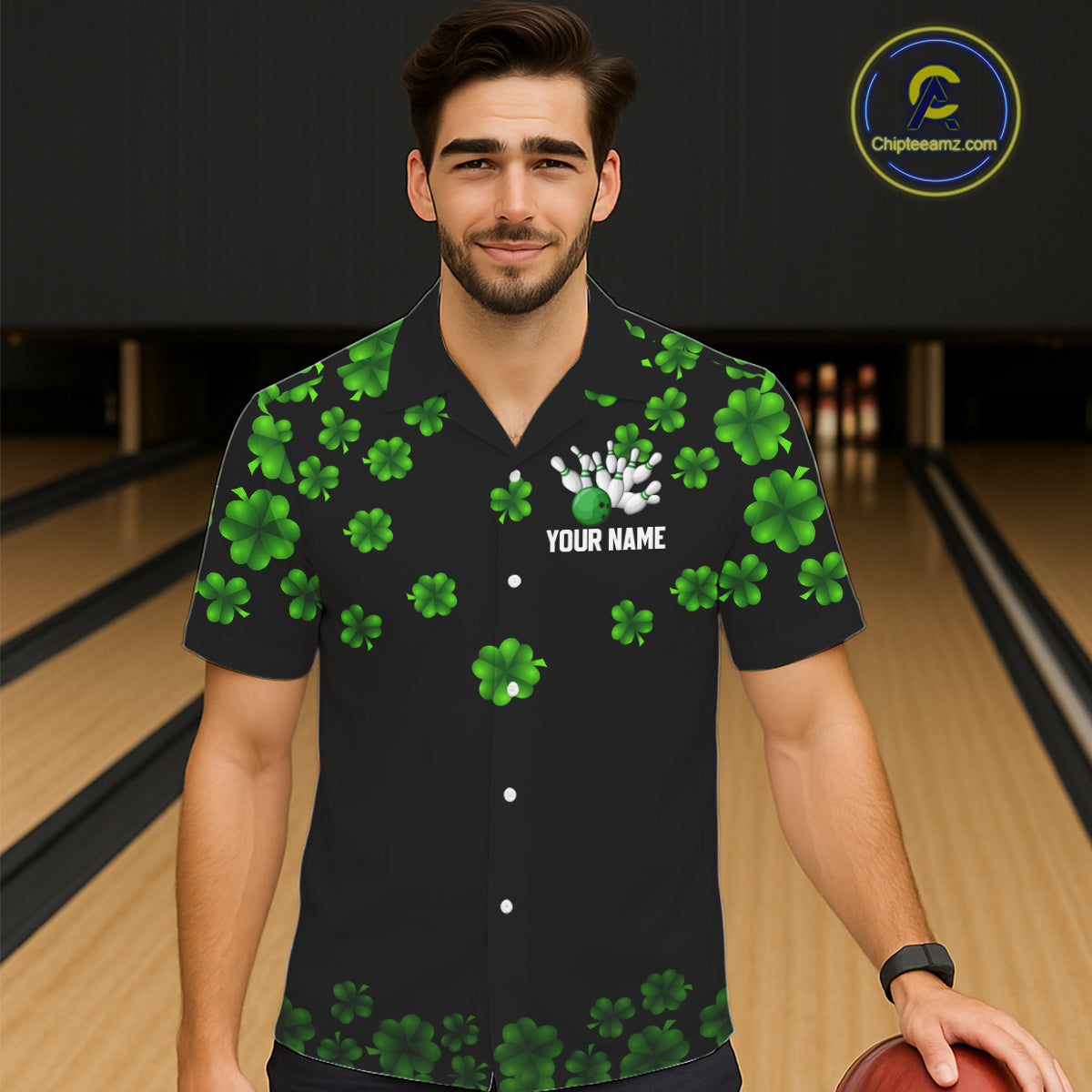 Black and Green Shamrock Funny Bowling Hawaiian Shirt Custom St Patrick's Day Bowling Team Jersey NQS11163