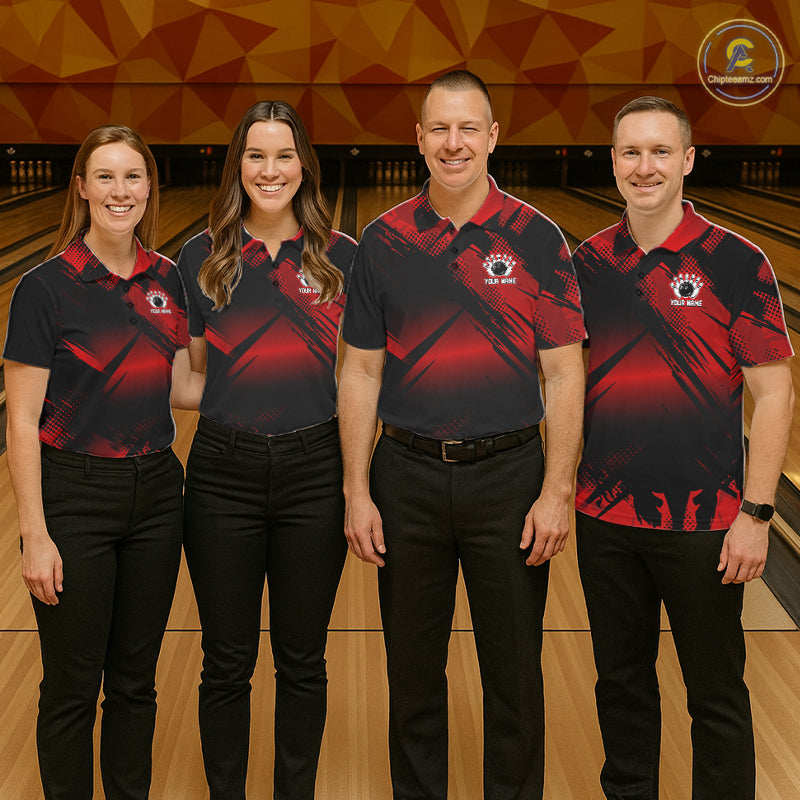 Black and Red Camo Bowling Polo, 1/4 zip Shirts For Men Custom Bowling Team League Jerseys NQS11175