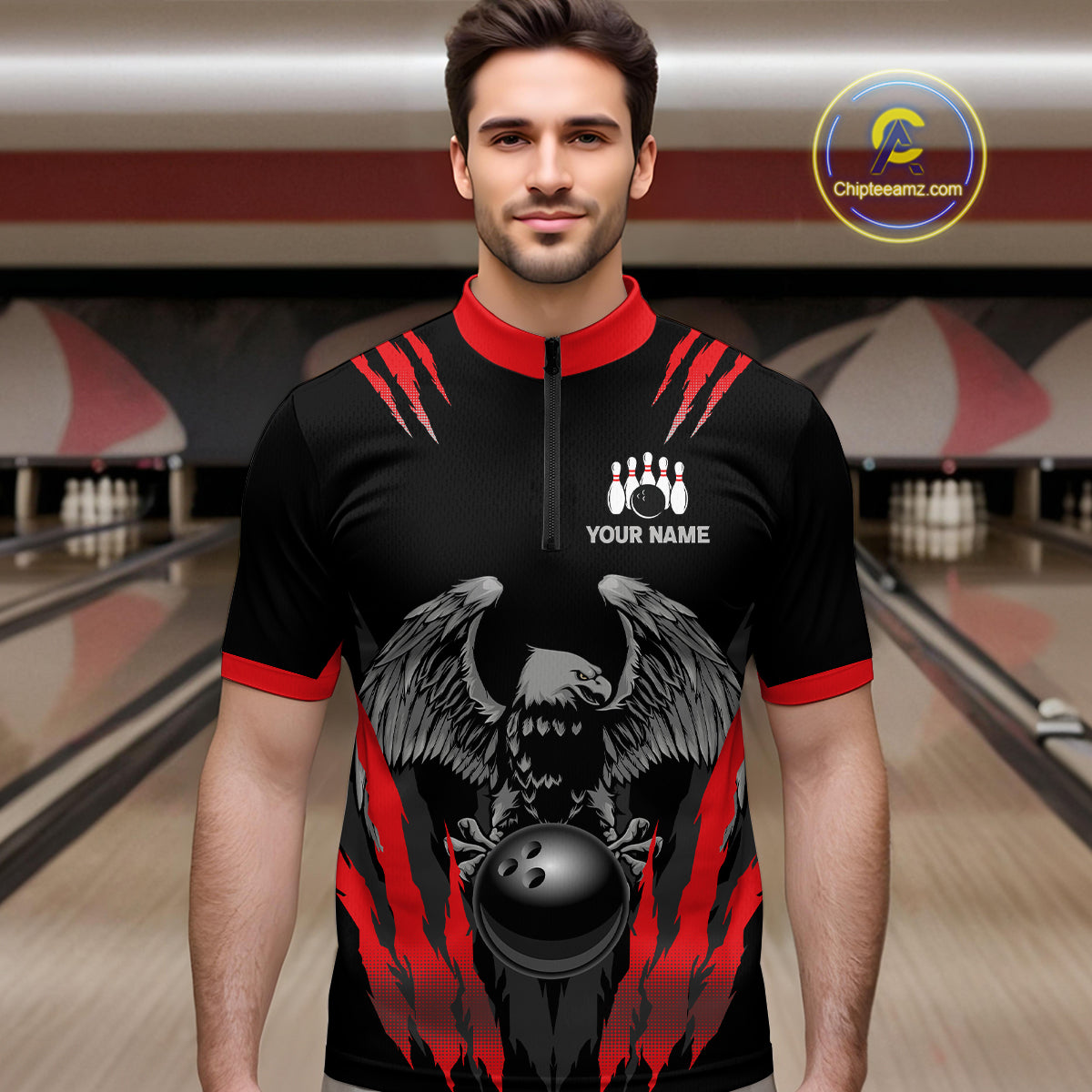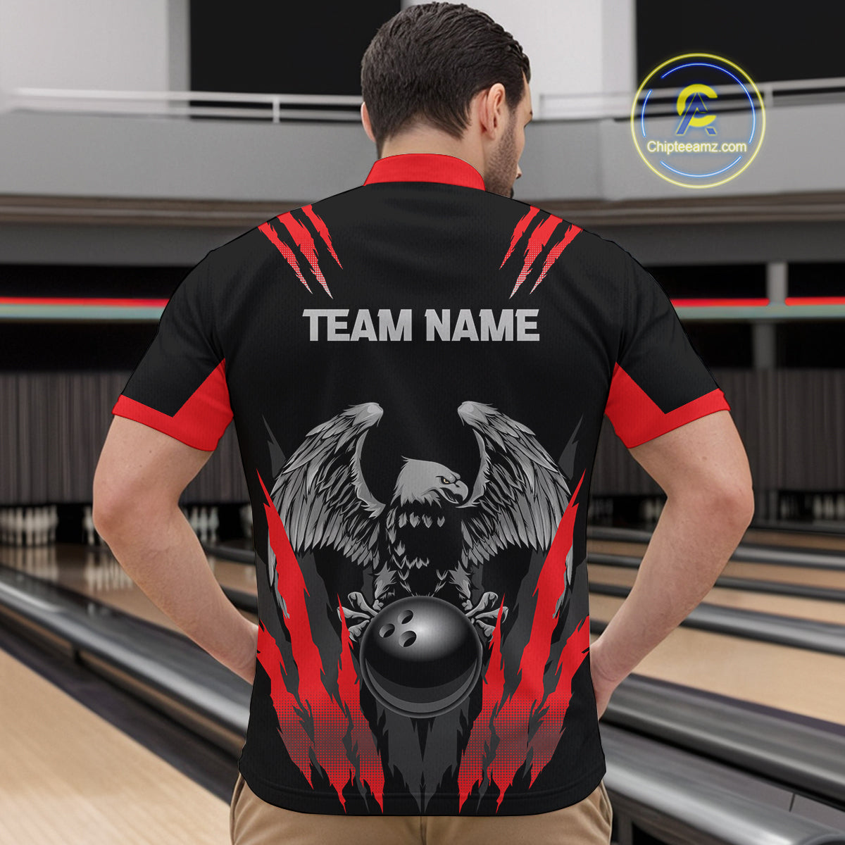 Black and Red Eagle Bowling Shirts For Men Custom Eagle Bowling Team Jerseys Bowling Uniform NQS11151