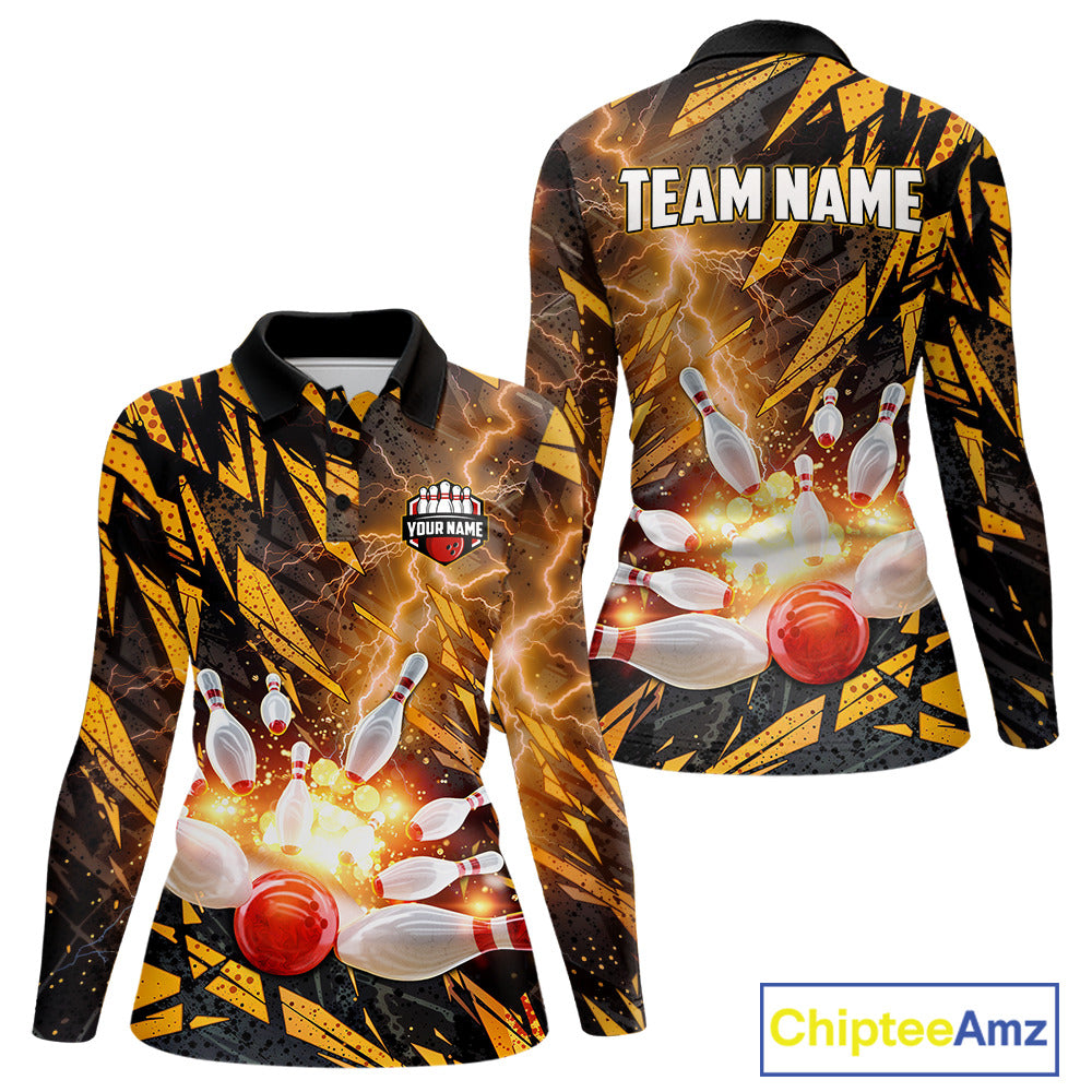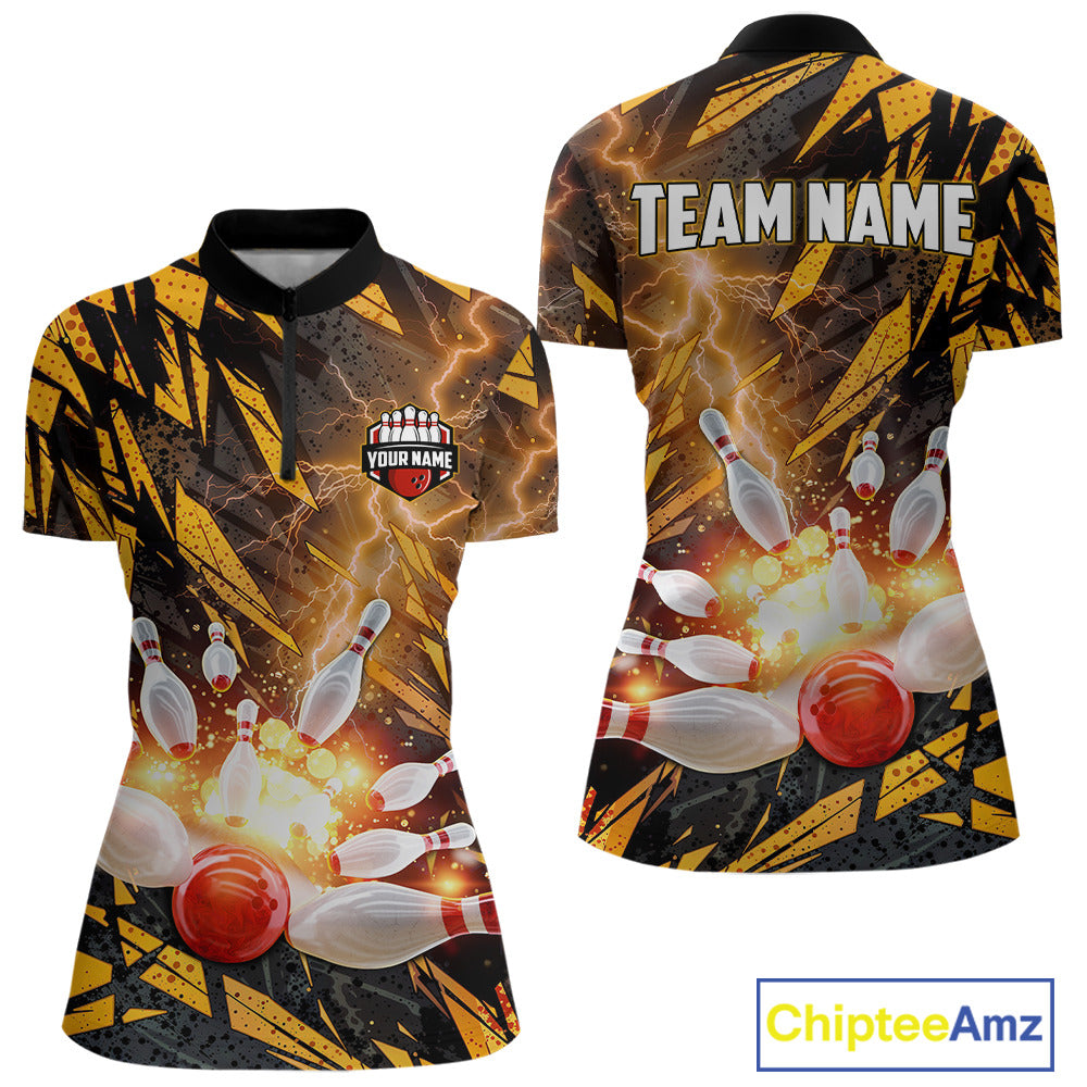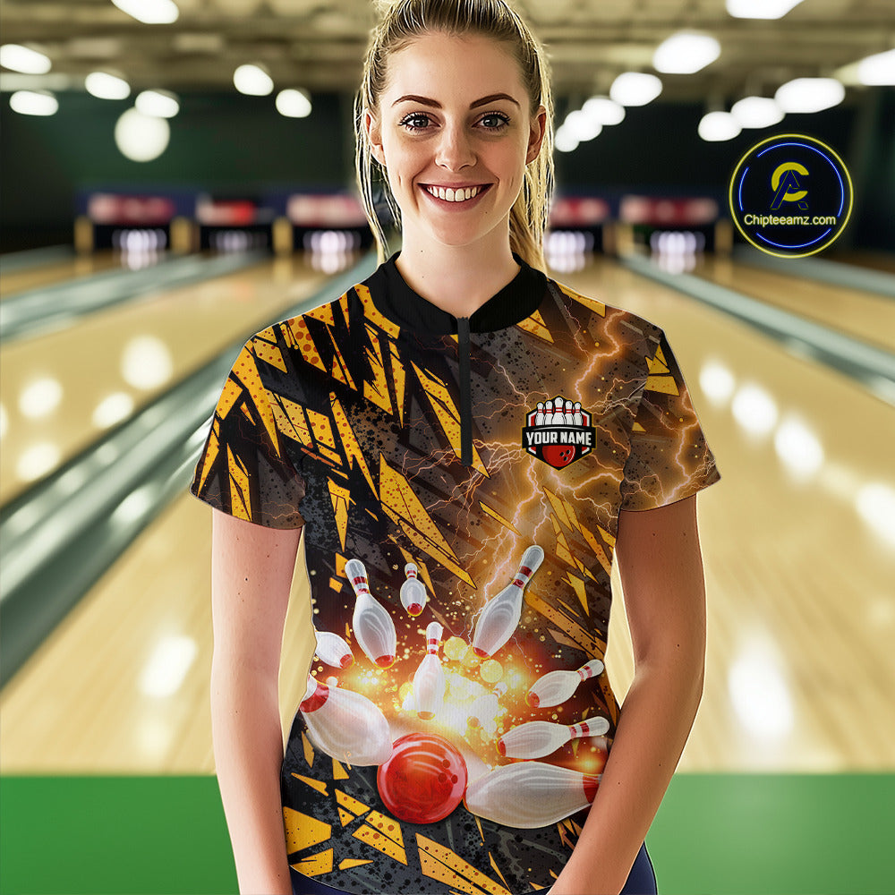 Black and Yellow Camo Lightning Thunder Bowling Shirts For Women Custom Bowling Team Jerseys NQS11153