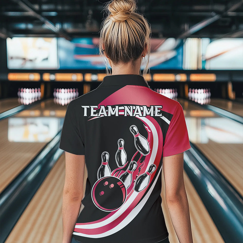Black & Pink Bowling Polo, 1/4 Zip Shirt For Women Custom Bowling Team League Jersey, Gift For Bowler NQS9491