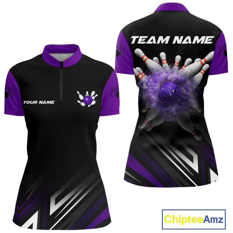 Personalized Bowling shirts for women custom Black and Purple Bowling team jerseys, gift for bowlers NQS11080