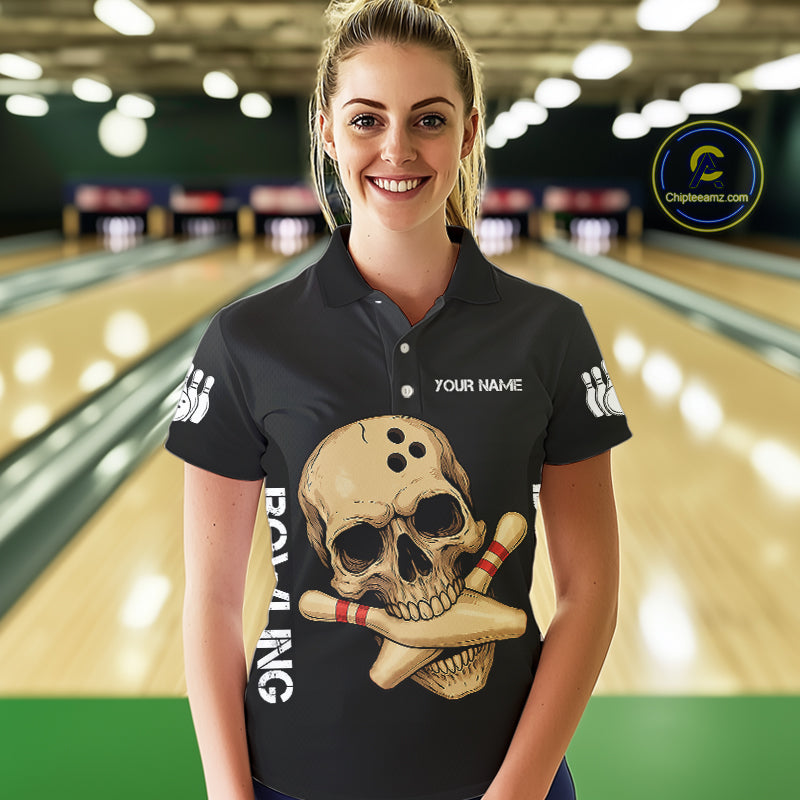 Personalized Skull Bowling Shirts For Women Custom Team's Name Skull Bowler Jerseys | Black NQS11081