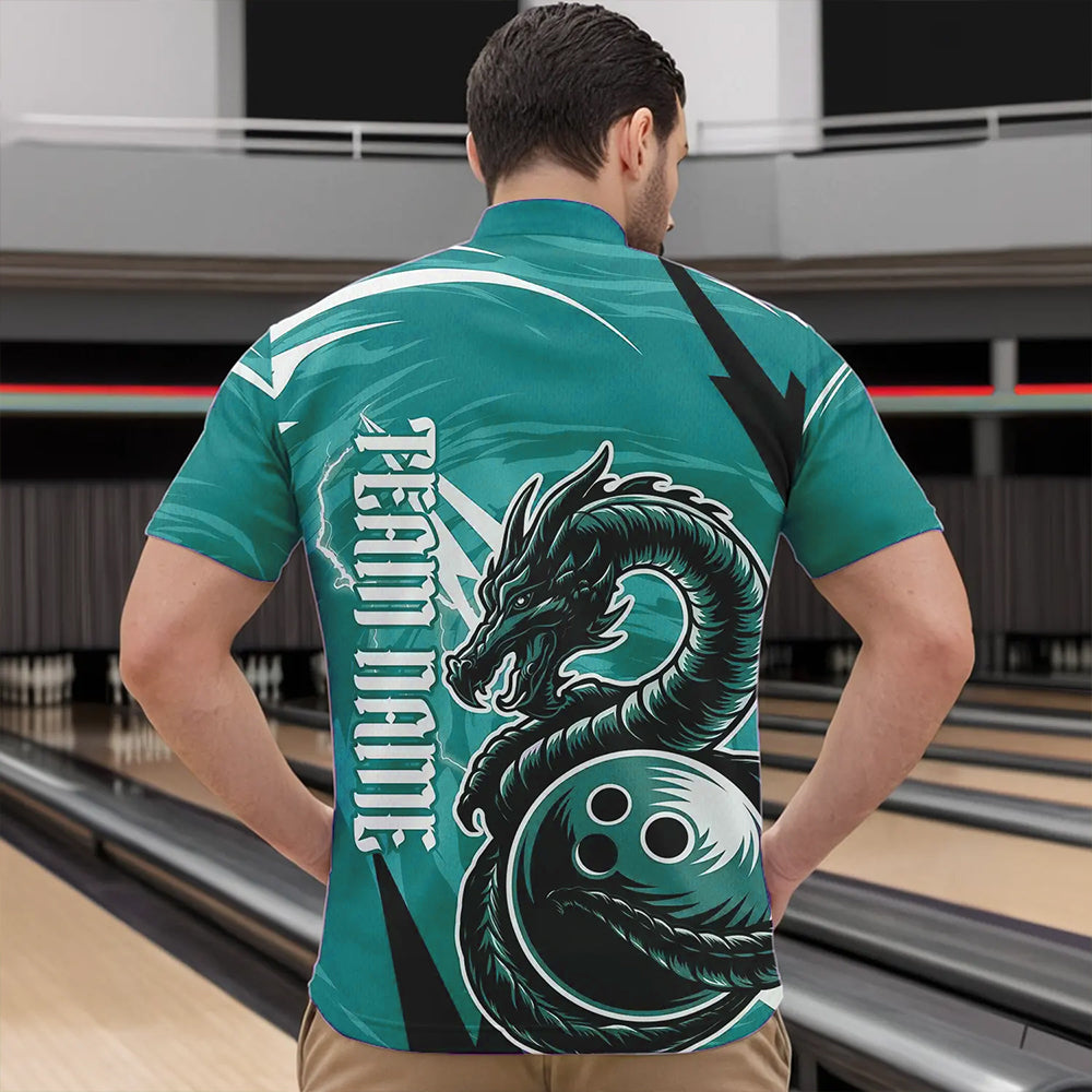Custom Black And Blue Thunder Lightning Dragon Bowling Jerseys Bowling Quarter-Zip Shirts For Men IPHW8661