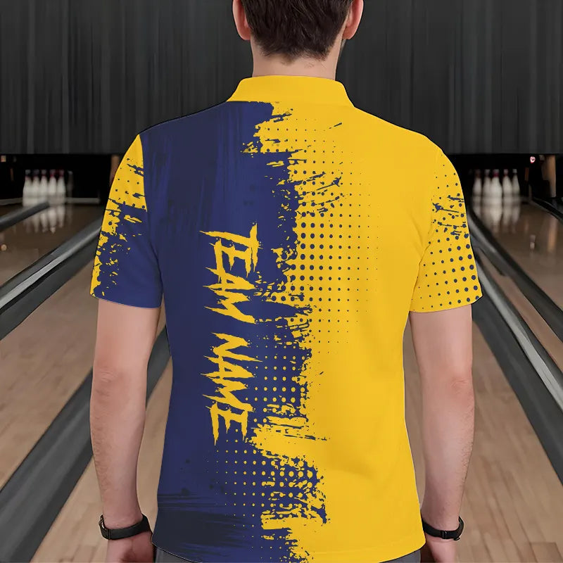 Blue and Yellow Bowling Polo, Quarter Zip shirts for Men Custom Bowling Team Jerseys NQS9354