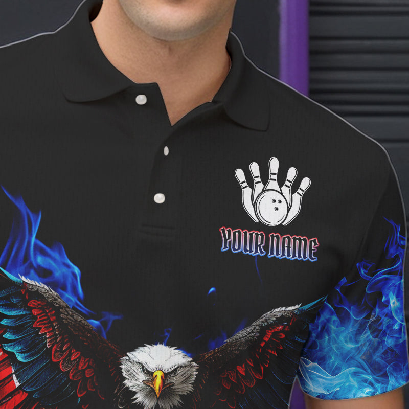 Blue Flame Smoke American Flag Eagle Skull Mens Bowling Shirts Custom Patriotic Bowling Team Jersey NQS9659