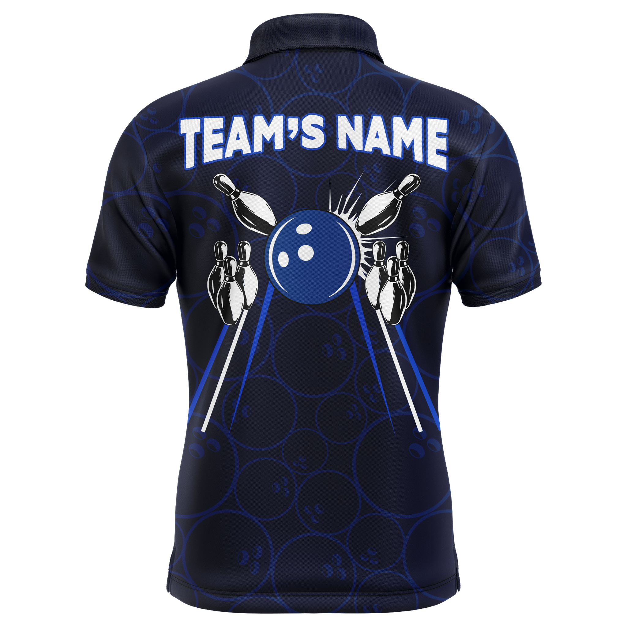 Custom Bowling Polo Shirt For Men Navy Bowling Team Jersey Couple Bowling Shirt BDT342