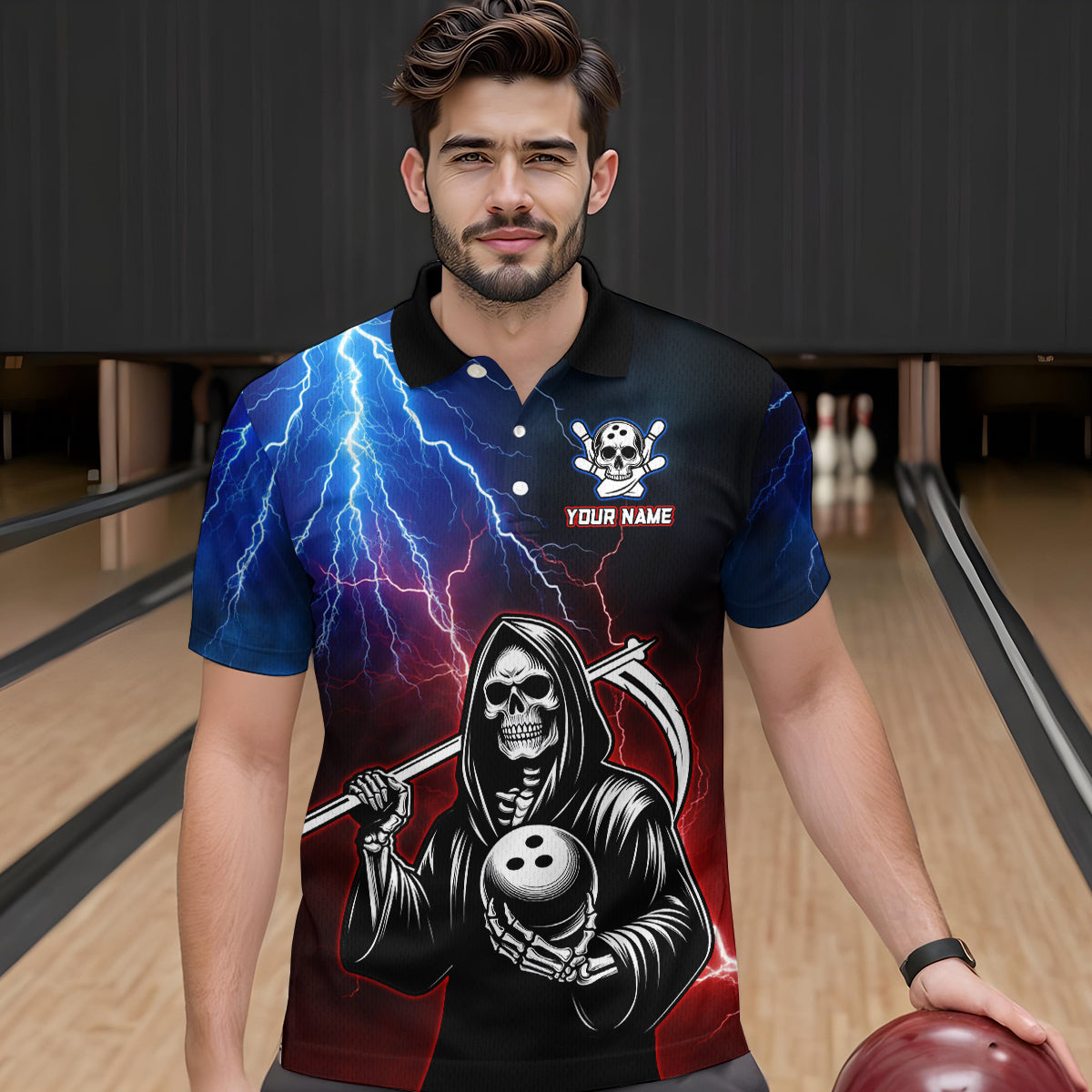 Thunder Bowling Shirt| Grim Reaper Bowling Jersey, Custom Bowling for Men Polo Bowling Shirt QZT405