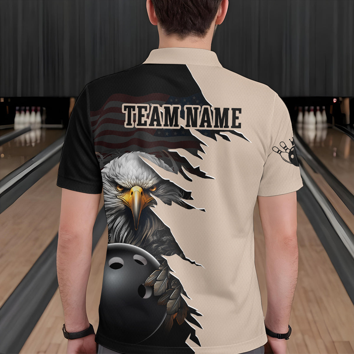 US Flag Eagle 3D Bowling Shirt for Men Custom Name Polo & Quarter-zip Bowling Jersey with Team HNT05