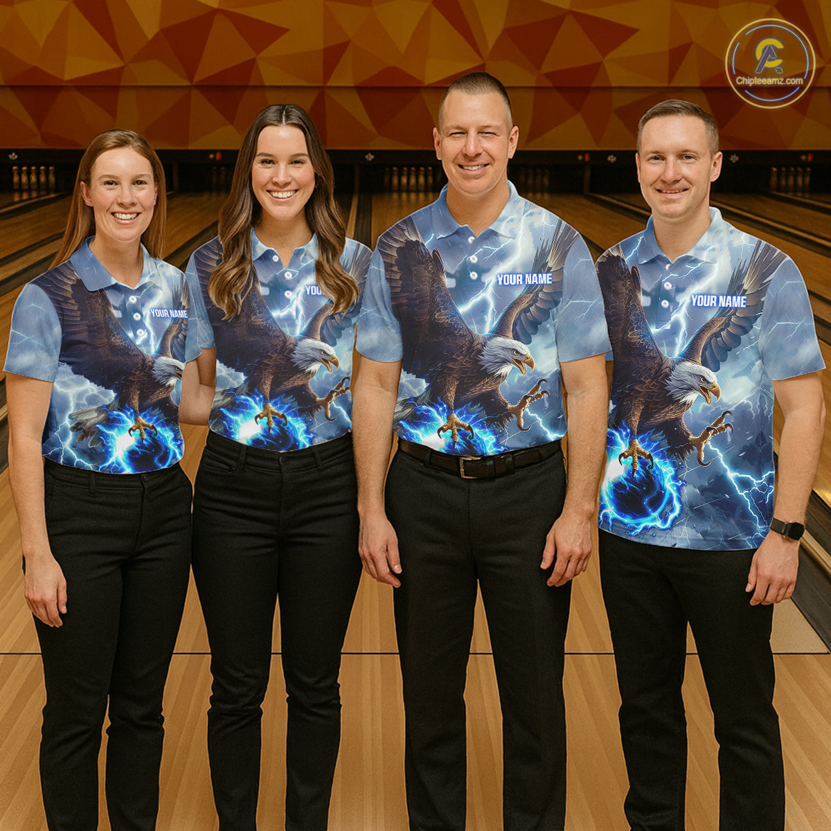 Blue lightning thunder bowling Eagle custom Men Bowling Polo Shirts, gift for team bowlers NQS7488