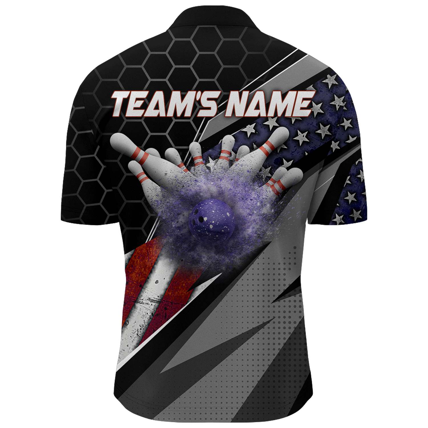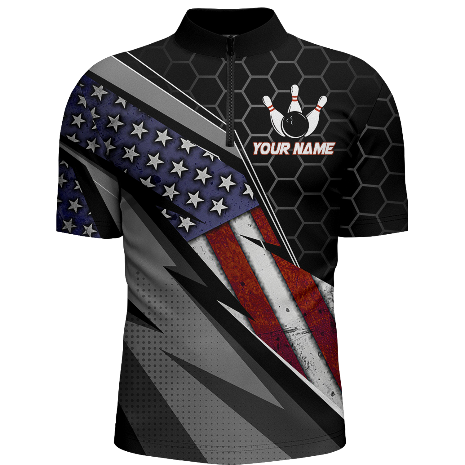 American Flag Bowling Shirt Men Patriotic Bowling Jersey Team Custom Bowling Quarter-Zip Shirt BDT381