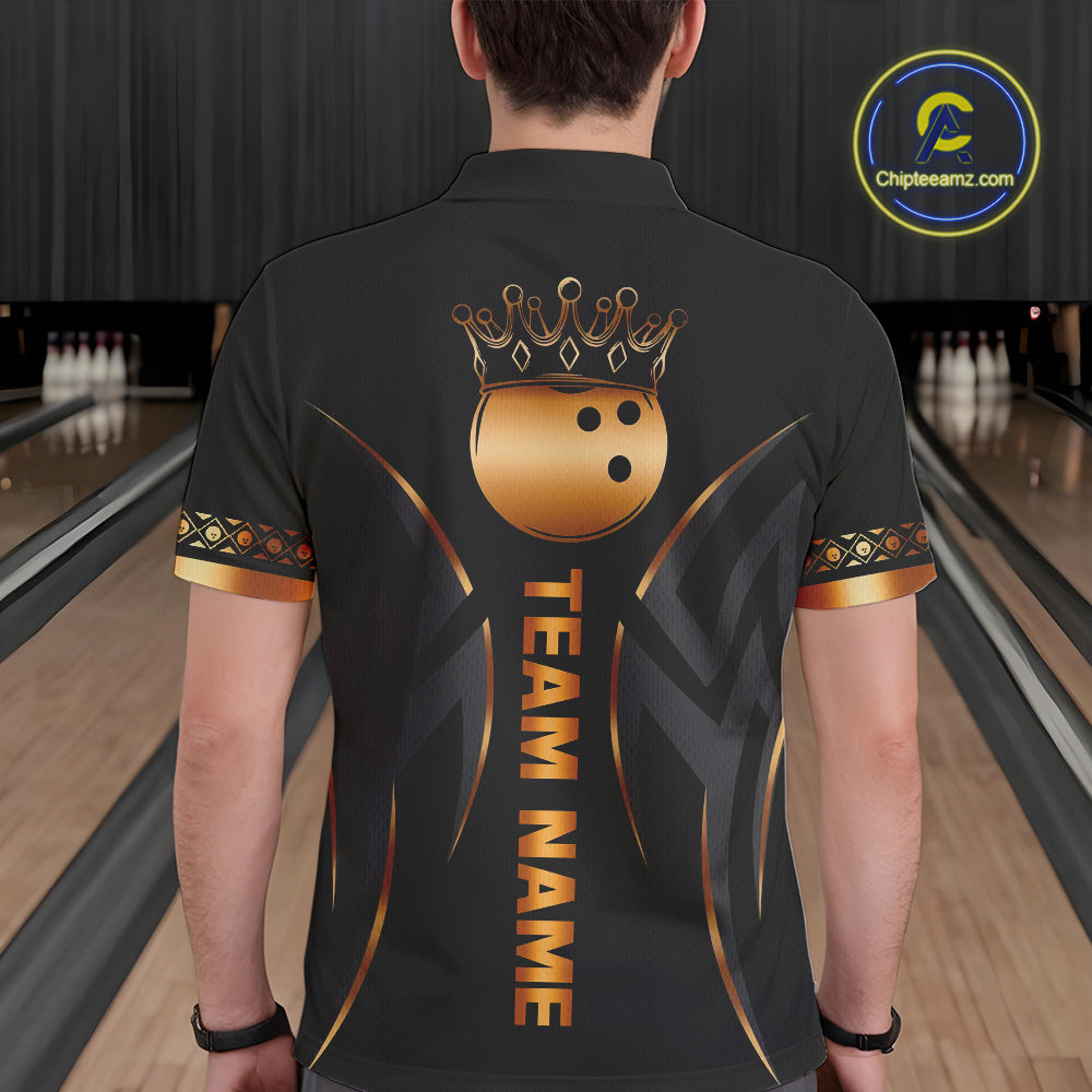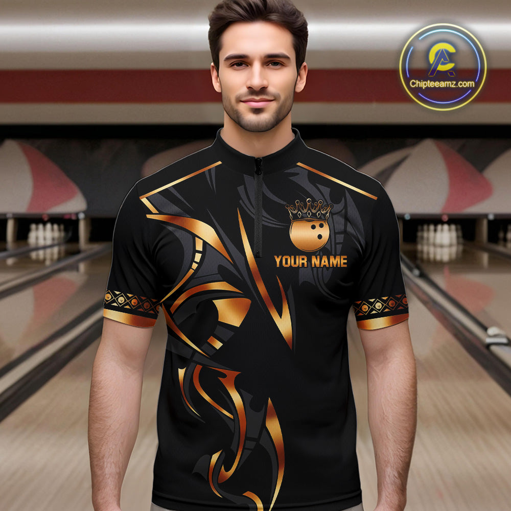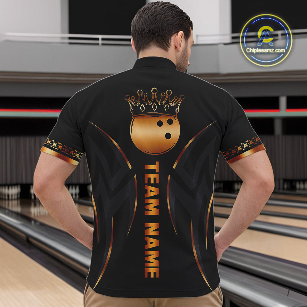 Black and Orange crown Bowling ball Polo, Quarter Zip Shirts for Men Custom Bowling Team jerseys NQS10538