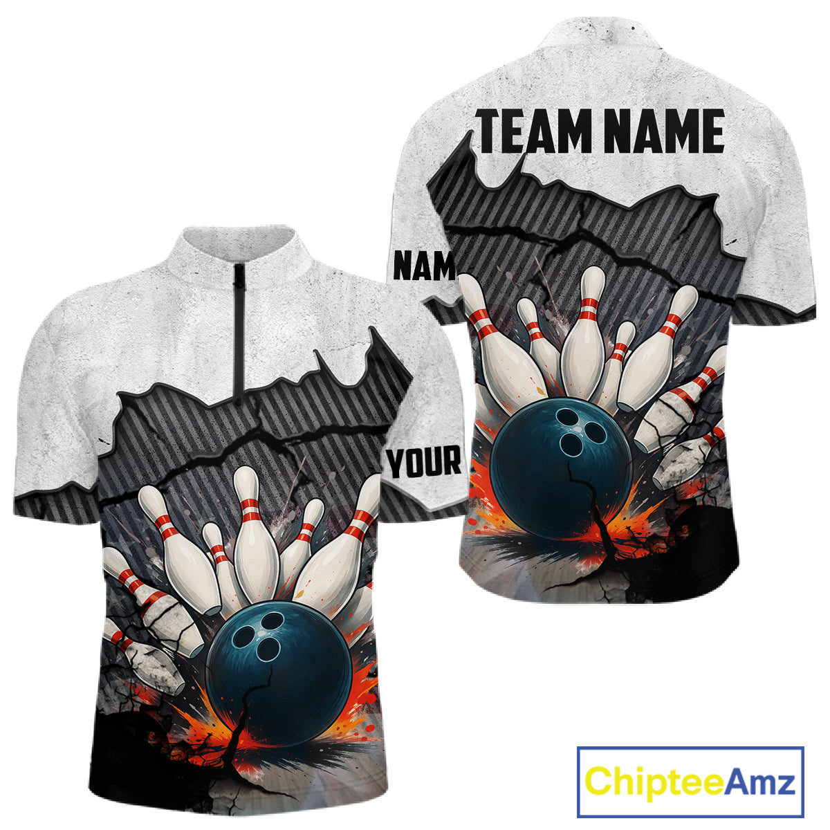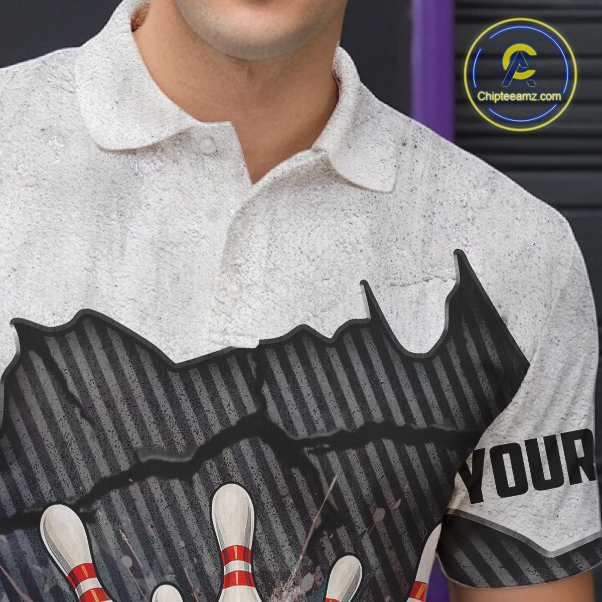 Black and White grunge Bowling Shirts for Men Custom Team Bowling Jerseys, Gift for Bowlers NQS10751