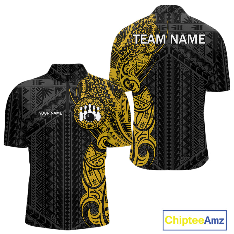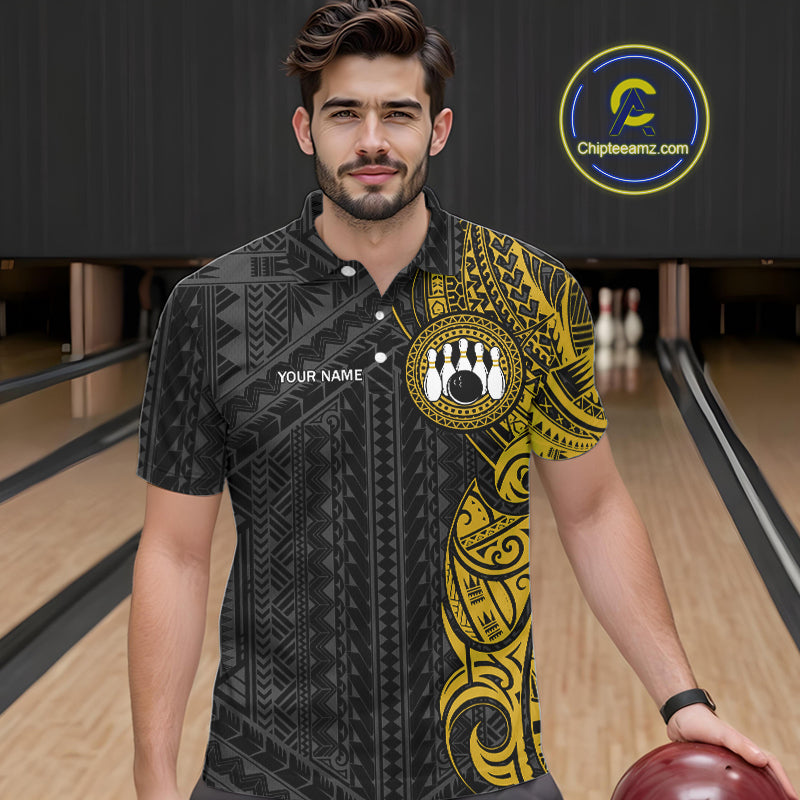Black and Yellow Tribal pattern Men Bowling Shirt Custom Bowling outfit men Team bowling jersey NQS10650
