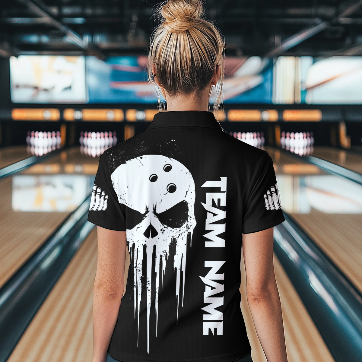 Black Skull Bowling Jersey Women Custom Bowling Team Shirts Bowling Women Polo Shirt CP31