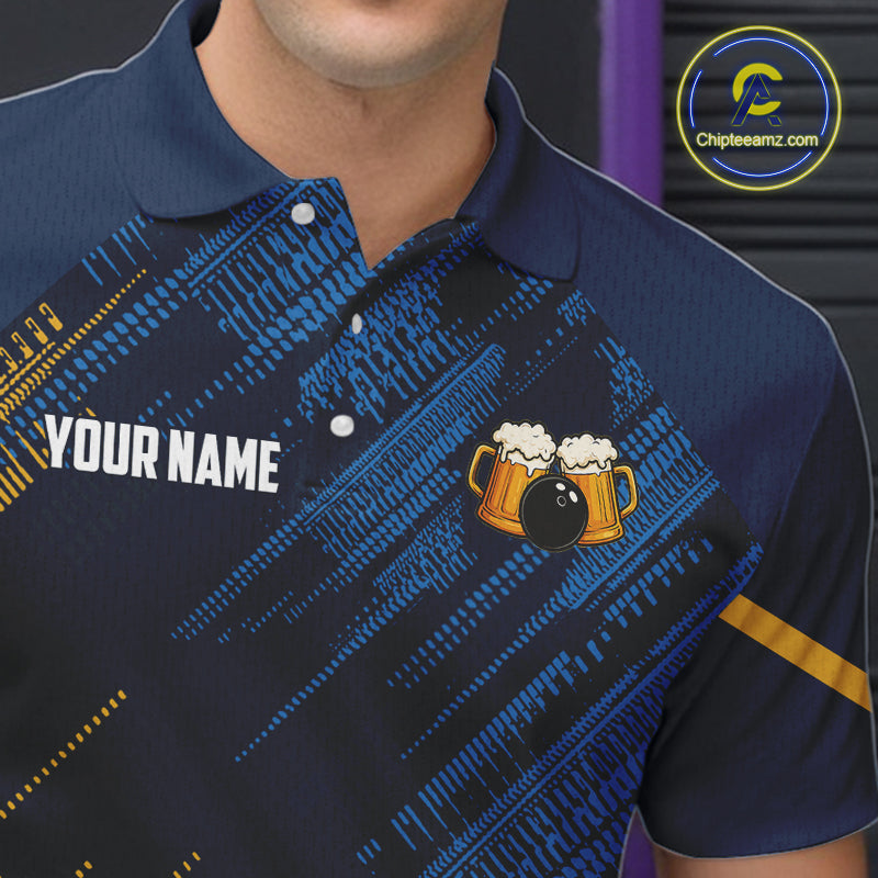 Blue and Yellow Pattern Bowling Shirt For Men Custom Here For The Beer Funny Bowling Tournament Shirt NQS10717