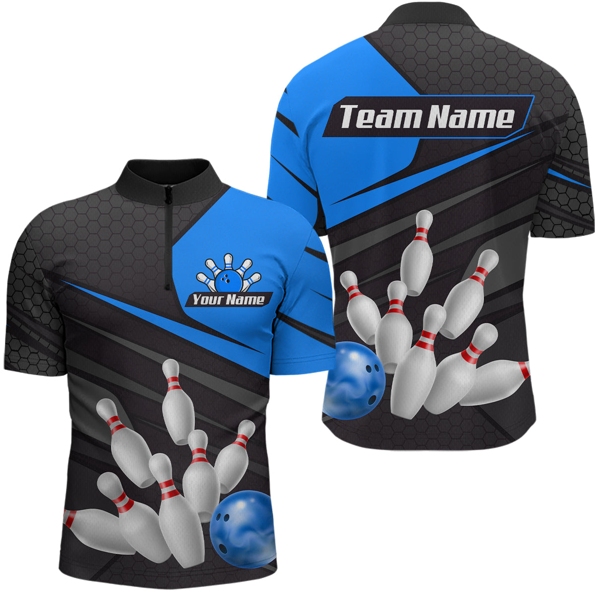 Blue Bowling Shirt for Men&Women Team Bowling Jersey Colorful Bowling Polo & 1/4 Zip MBL49