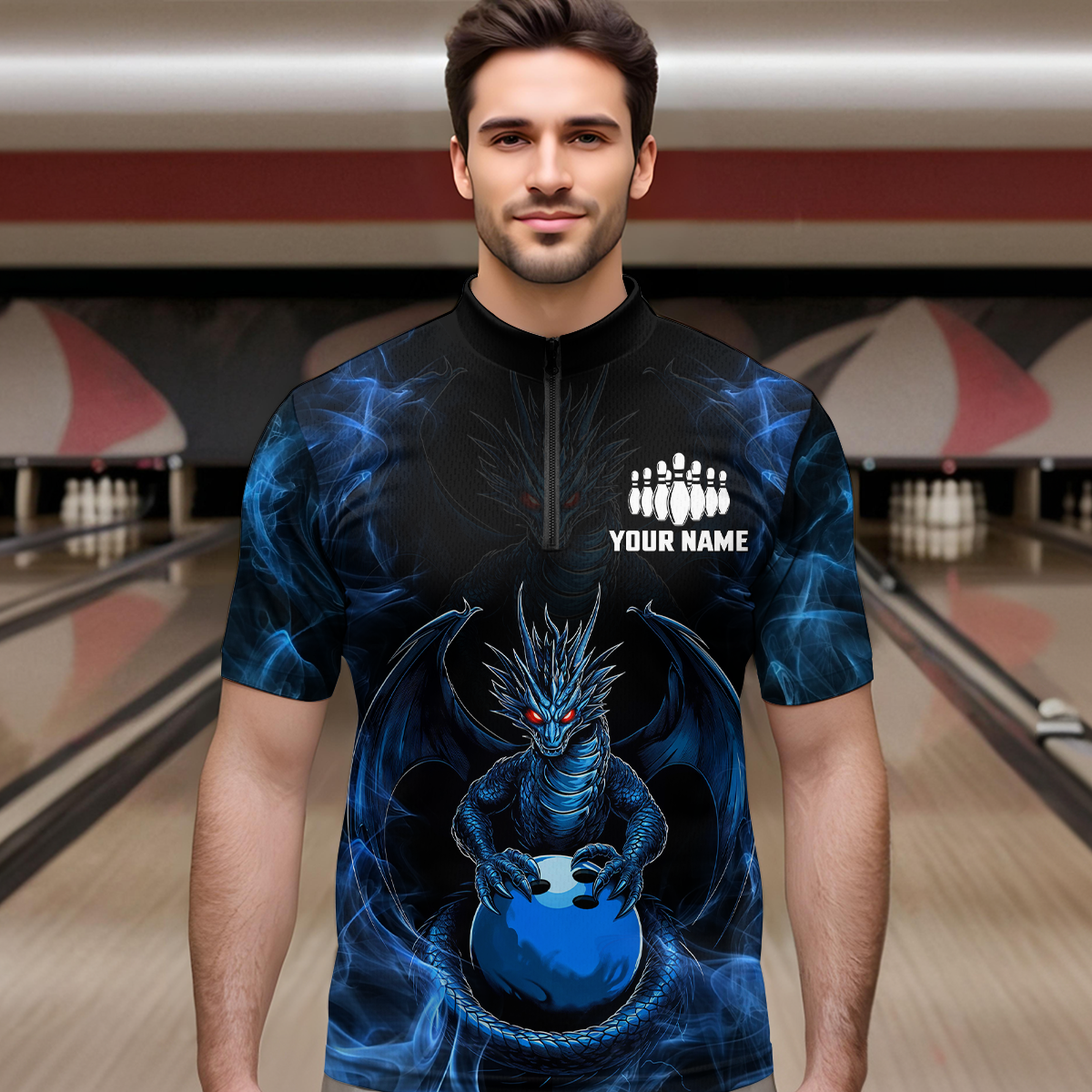 Blue Dragon Custom Name Bowling Shirts For Men, Bowling Team Jersey Polo & Quarter-Zip Shirt HNT39