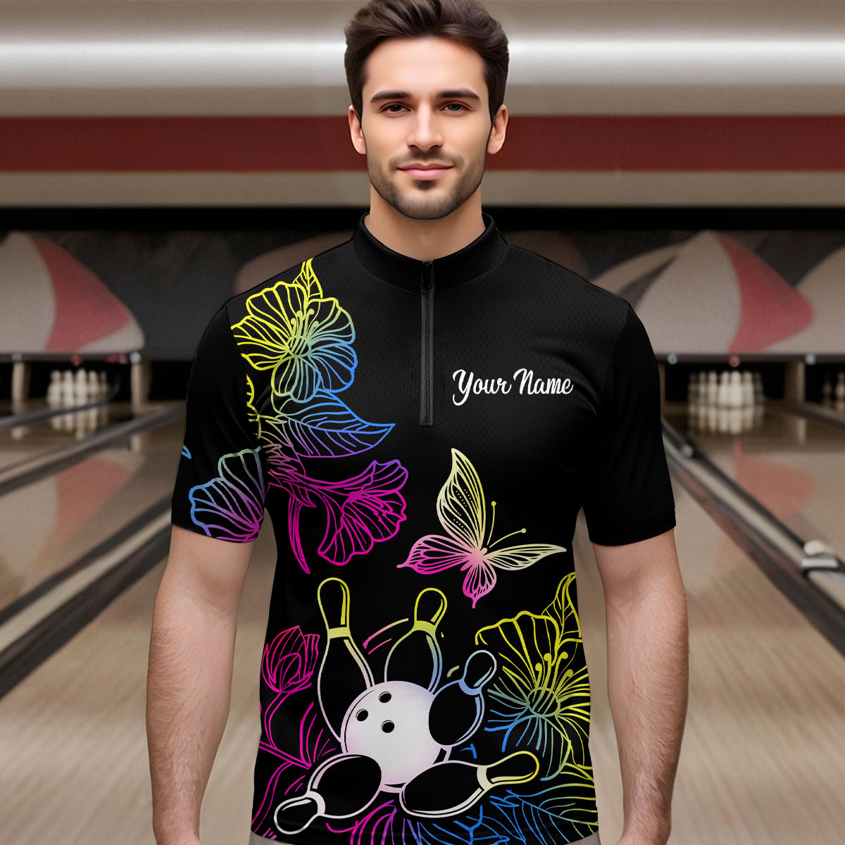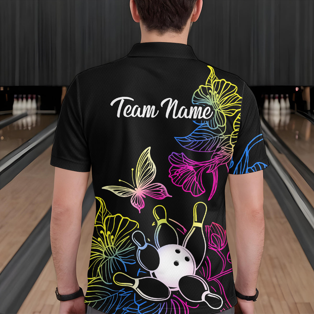 Colorful Butterflies Bowling Shirt for Men Bowling Team Jersey Shirts Polo & Quarter-Zip HNT27