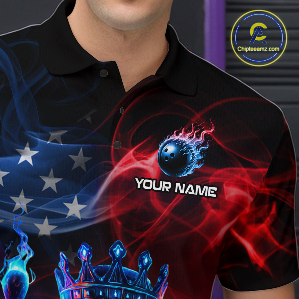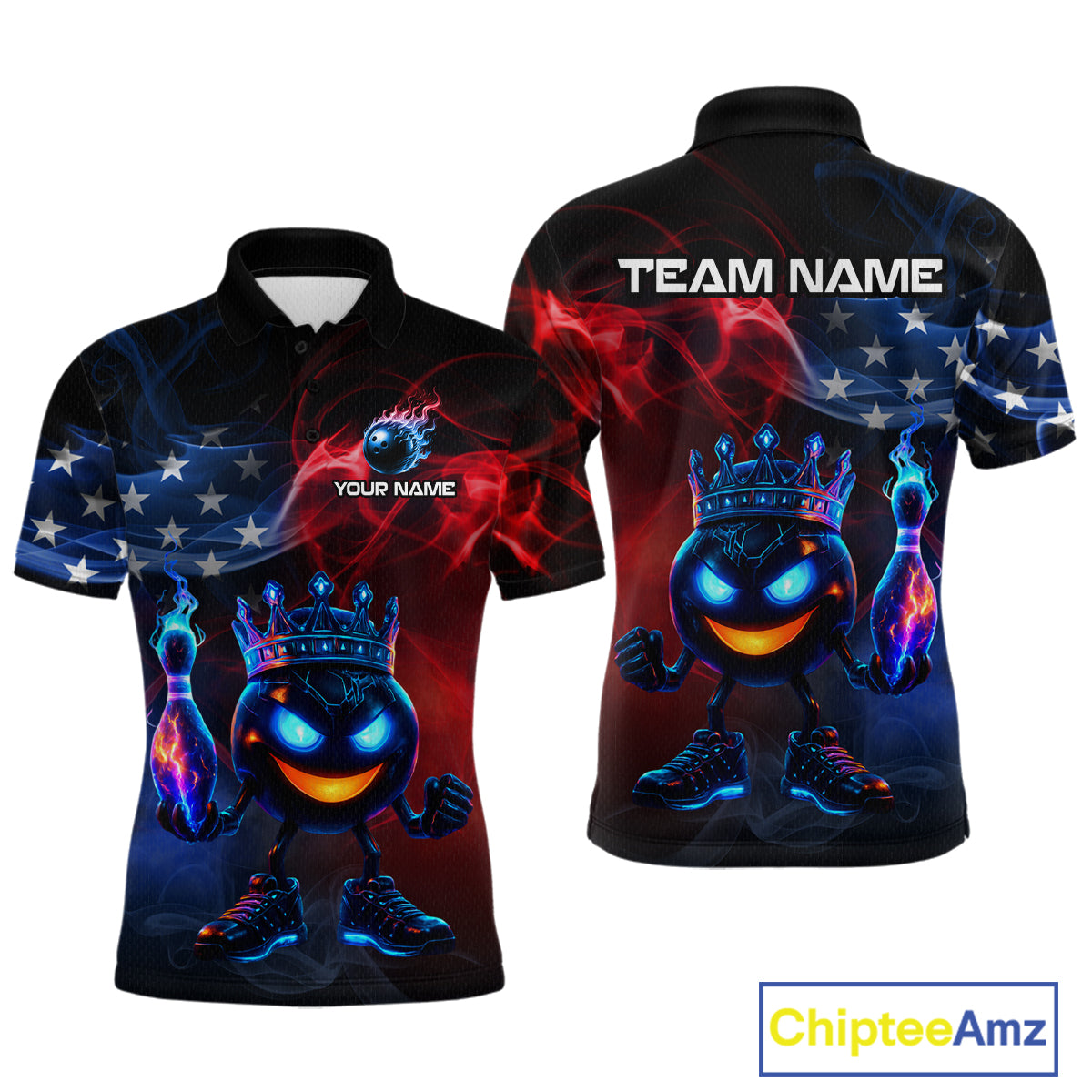 Custom American Flag Bowling Shirt Hero Bowling Ball Pin Polo & 1/4 Zip Bowling Jersey for Men QZT800