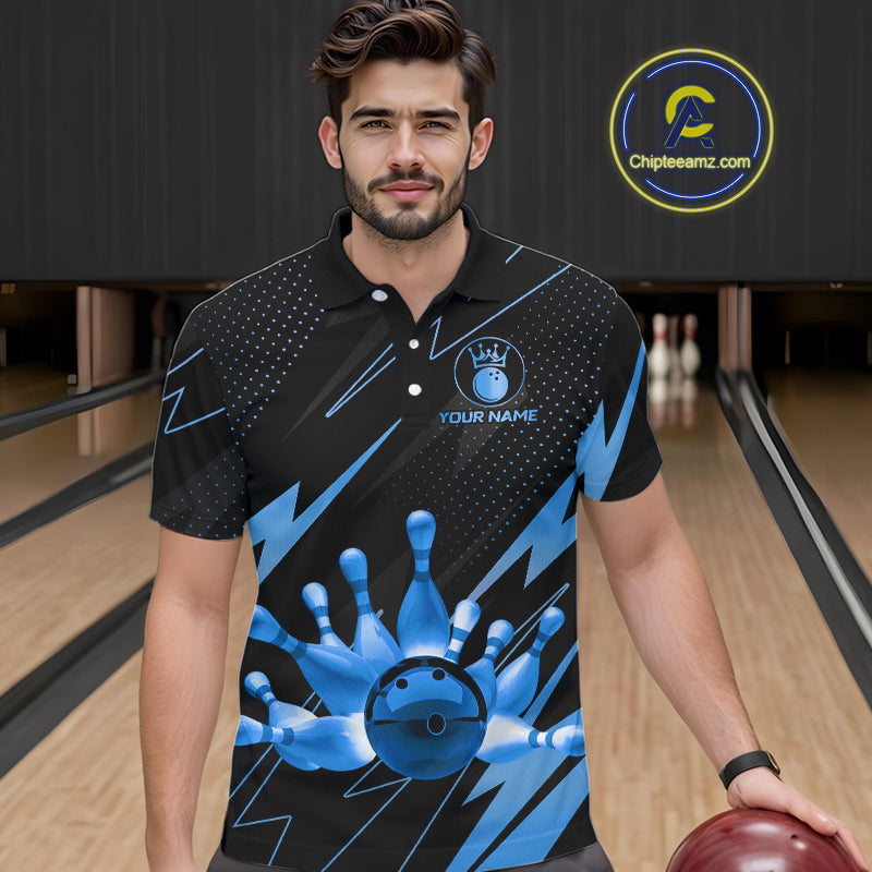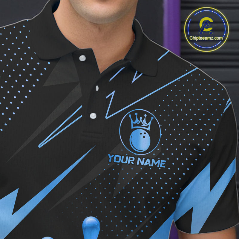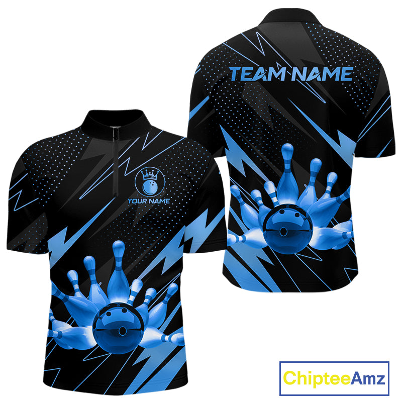 Custom Black and Blue Bowling Polo, Quarter Zip Shirts for Men, Team Bowling League Jersey NQS10892