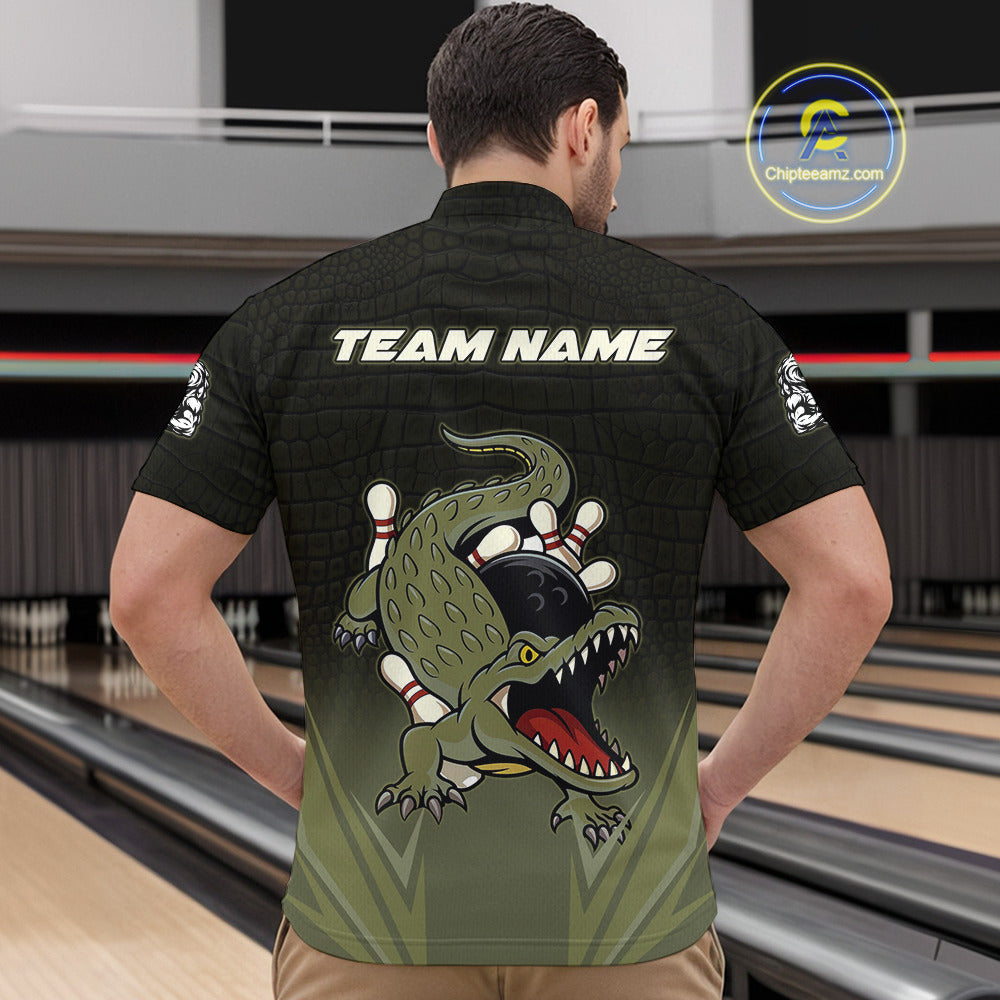 Custom Black and Green Alligator Bowling shirts for Men, Bowling Team league jersey NQS10735