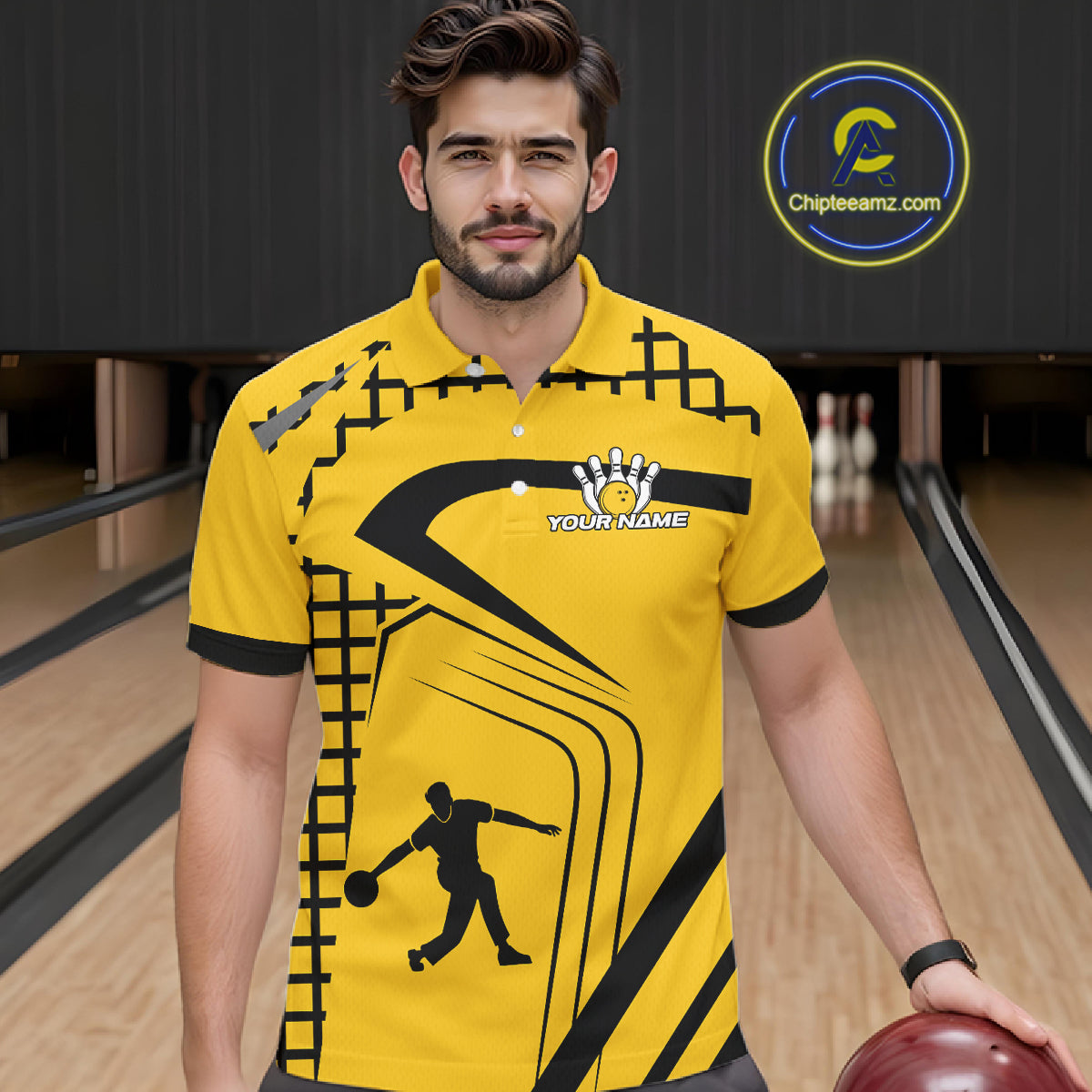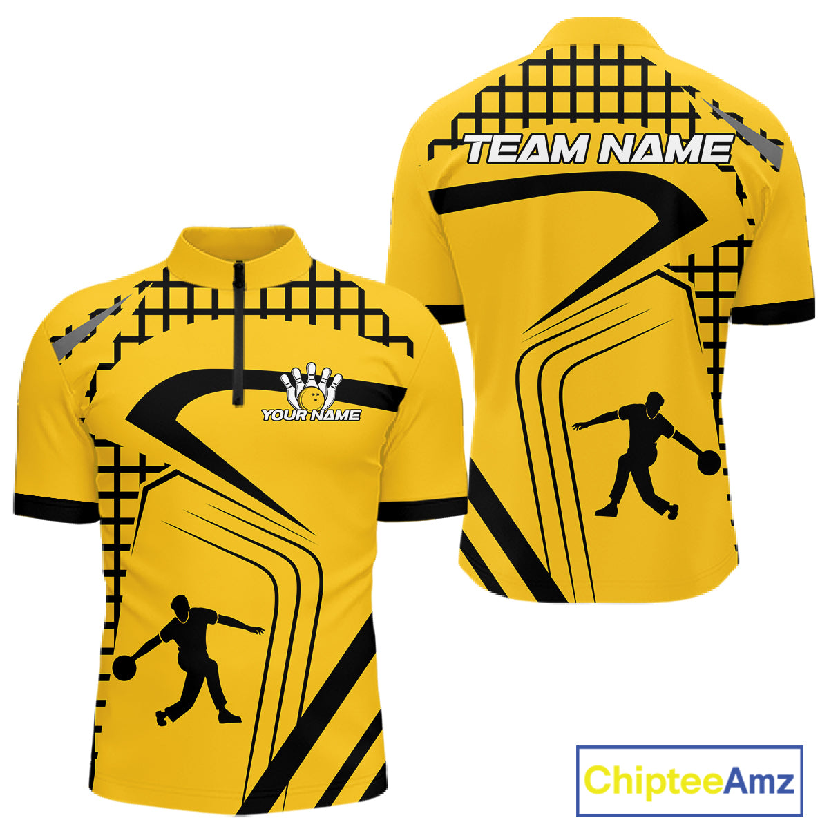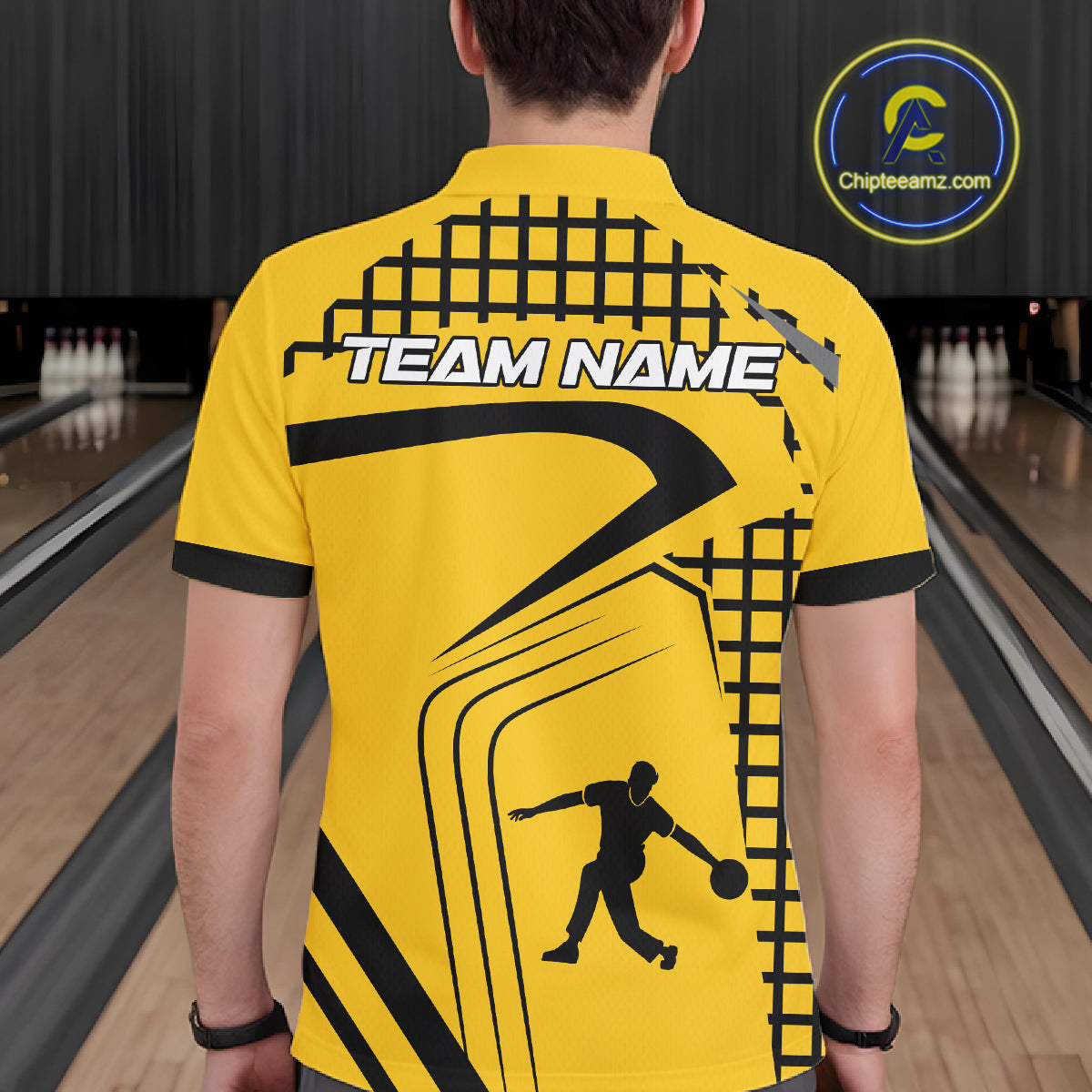 Custom Black and Yellow Bowling Shirts For Men, Personalized Team Bowling Jersey Bowler Outfit NQS10575