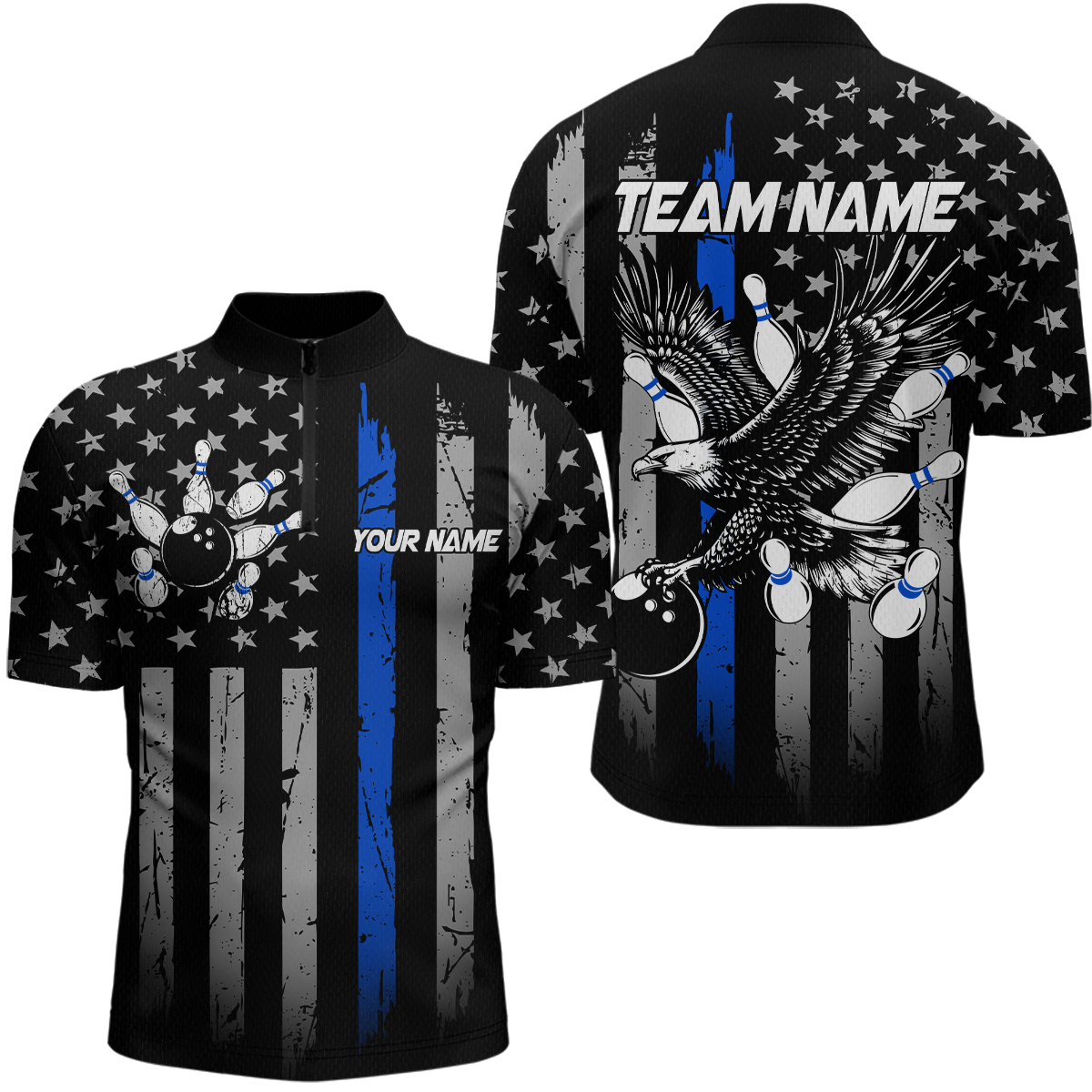 Custom Blue US Flag Eagle Bowling Jersey for Men Bowling Team Shirts Polo & 1/4 Zip HNT119