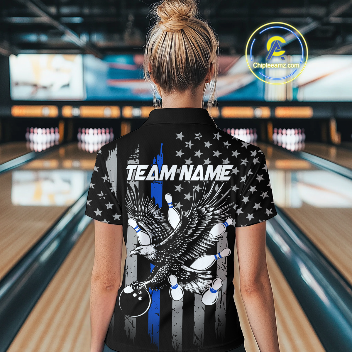Custom Blue US Flag Eagle Bowling Jersey for Women Bowling Uniform Polo & 1/4 Zip Bowling Team Shirts HNT119