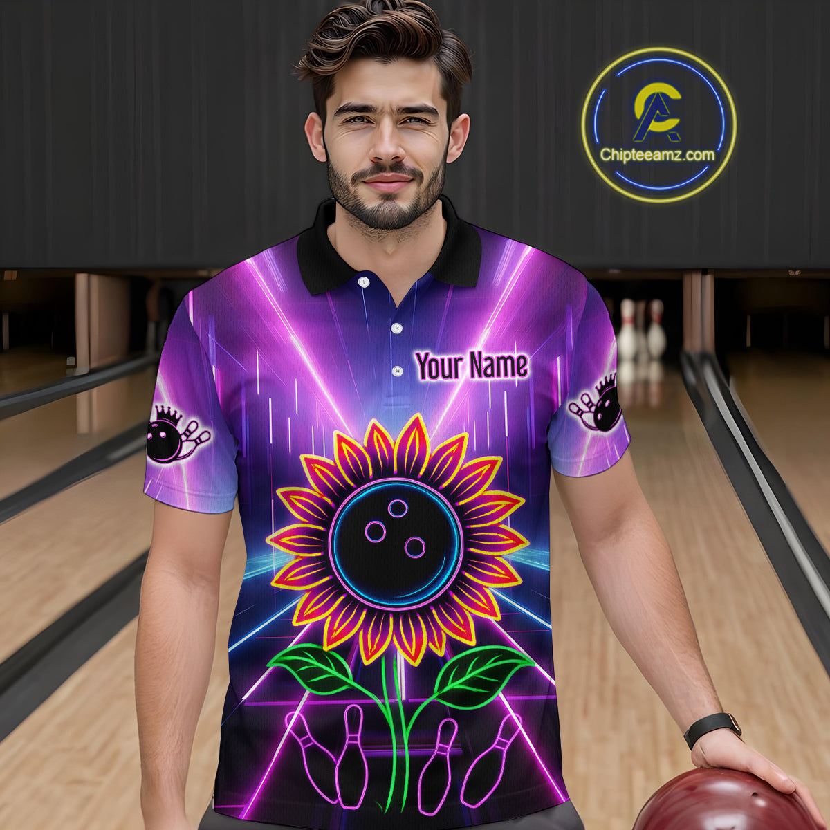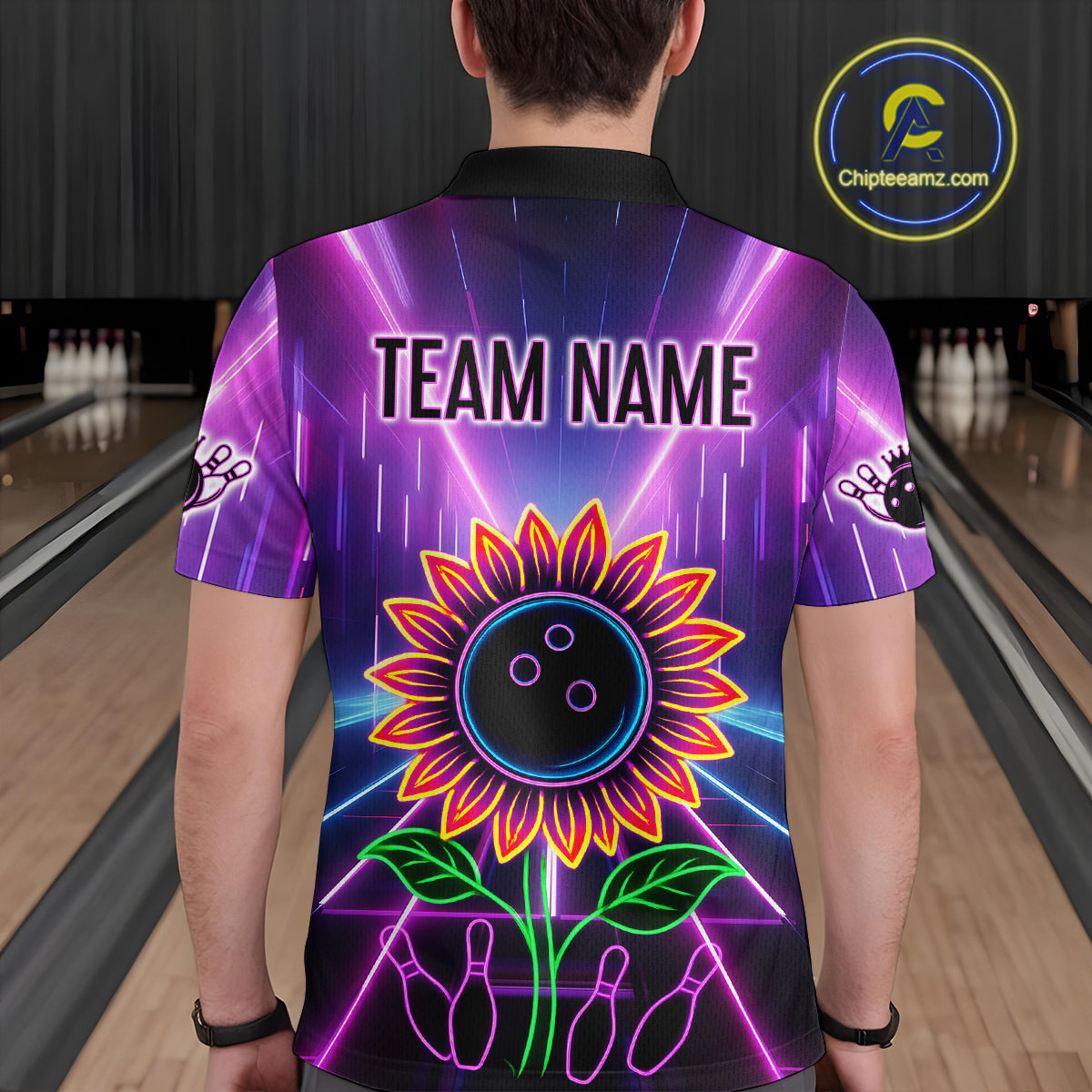 Custom Neon Lightning Sunflower Bowling Shirt Bowling Team Jersey for Men Bowling Polo & 1/4-Zip QZT770