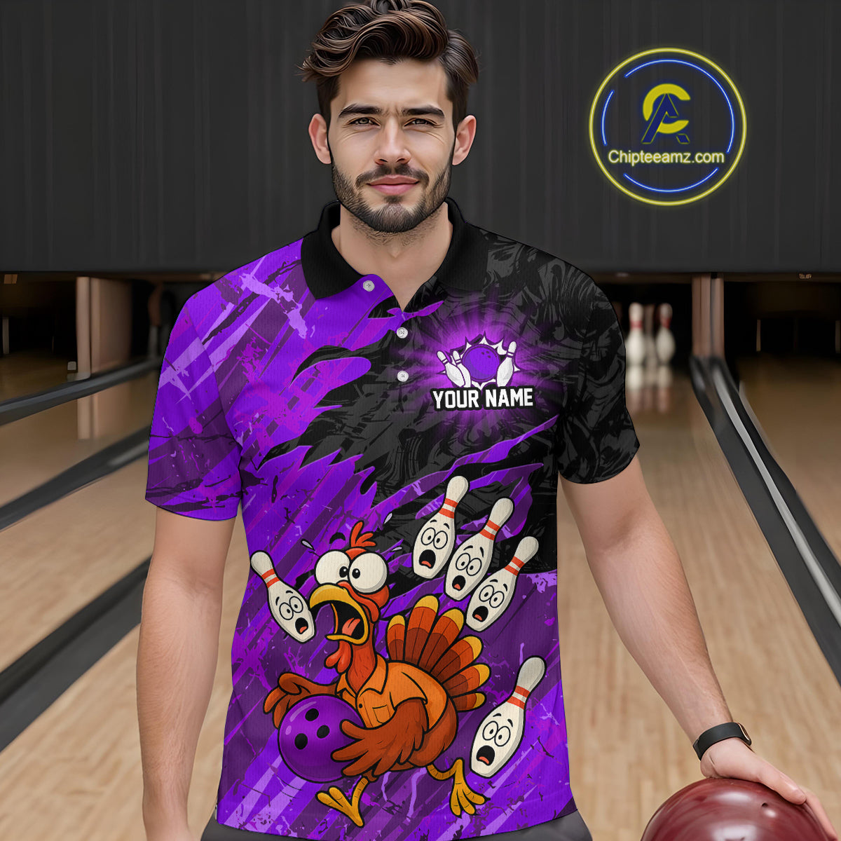 Custom Purple Turkey Bowling Shirt Funny Ball Pin League Jersey for Men Polo Outfit QZT765