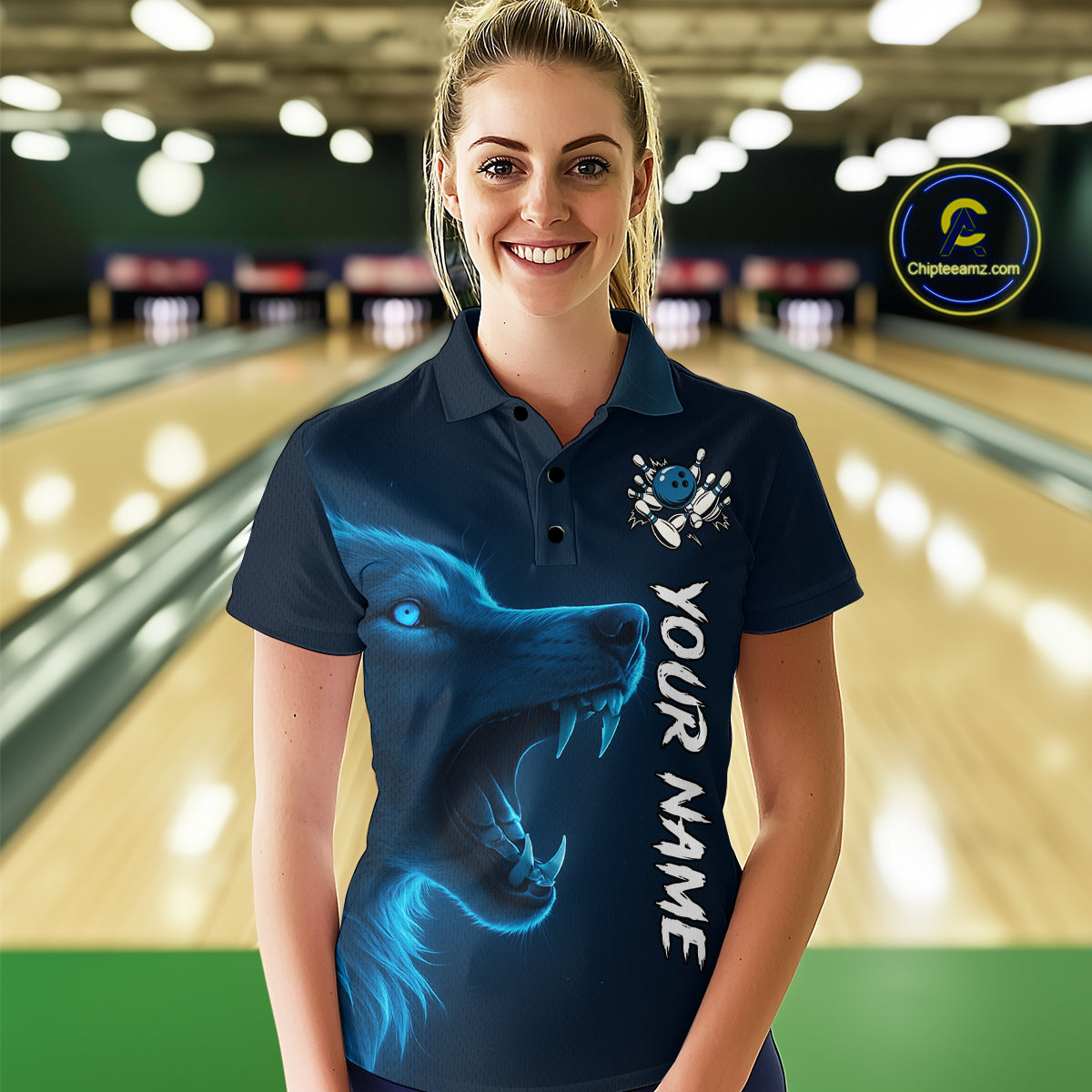 Custom Wolf Bowling Jersey for Women Polo & 1/4 Zip Bowling Team Shirts Bowling League HNT149