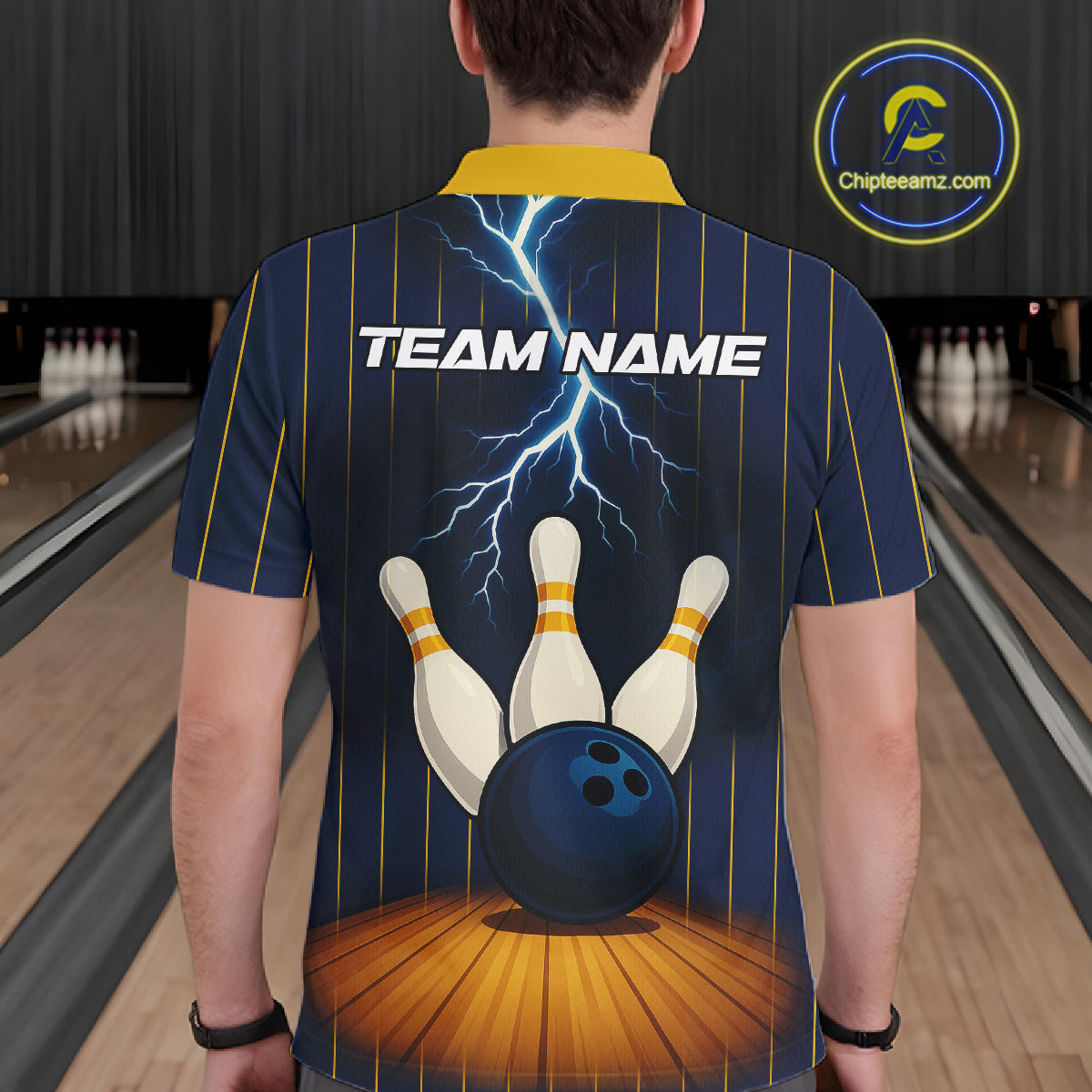 Custom Yellow and Blue Lightning Thunder Bowling Polo, 1/4 Zip Shirts For Men, Team Bowling Outfits NQS10620