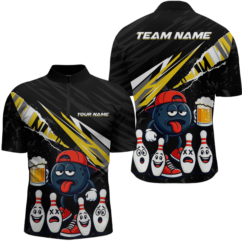 Custom Yellow Beer Bowling Jersey for Men Bowling Team Shirts Bowling Uniform Polo & 1/4 Zip HNT133