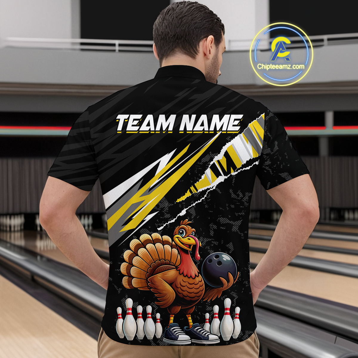 Custom Yellow Funny Turkey Bowling Jersey for Men Thanksgiving Bowling Shirts Polo & 1/4 Zip HNT117