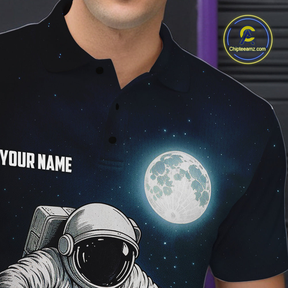 Funny Astronaut Bowling Polo, Quarter Zip Shirts For Men Custom Bowling Team Outfit, Gift For Bowler NQS10694