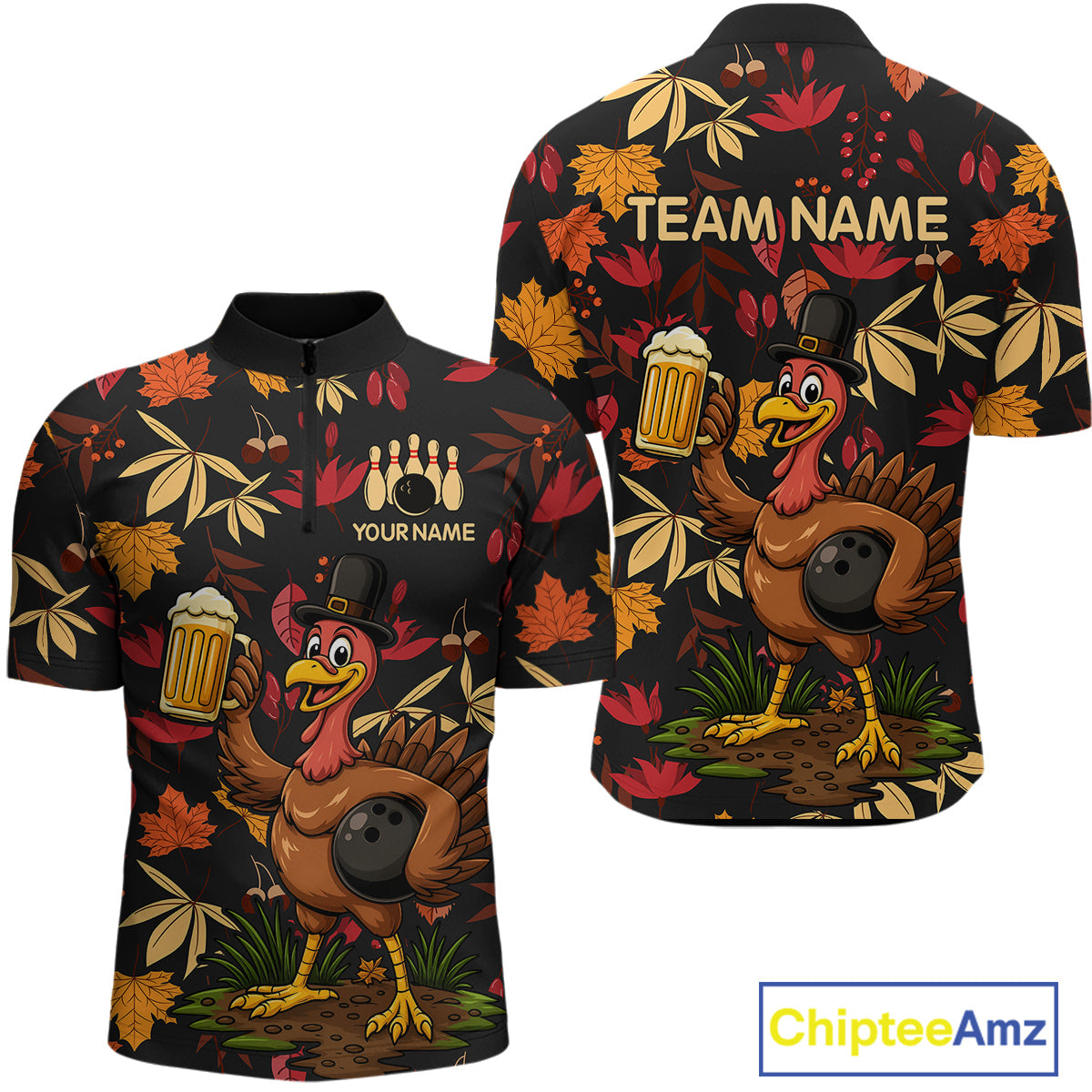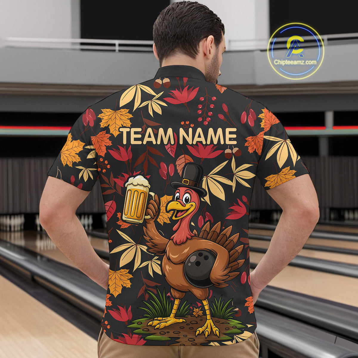 Funny Turkey Bowling Beer Thanksgiving pattern Custom Team bowling jerseys men, bowling gifts for men NQS10963