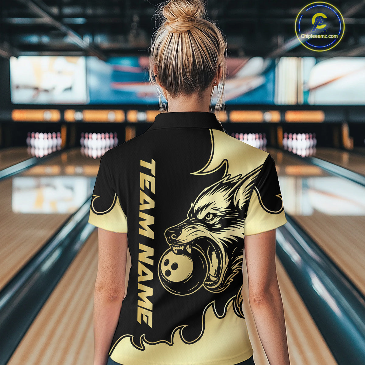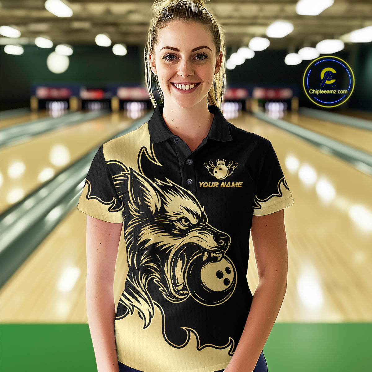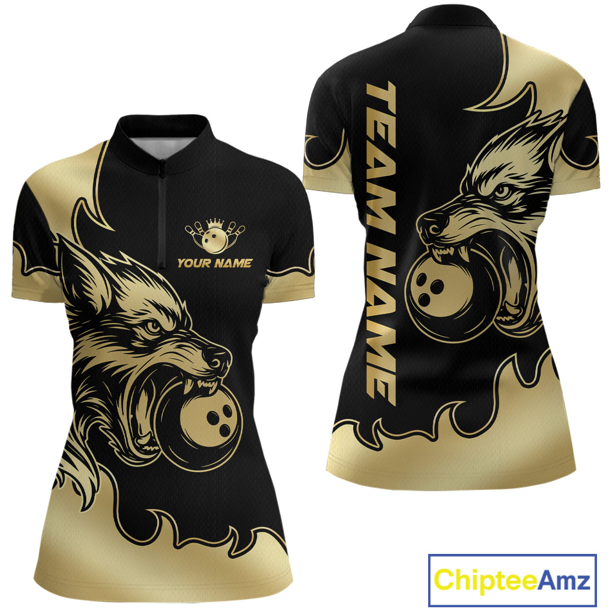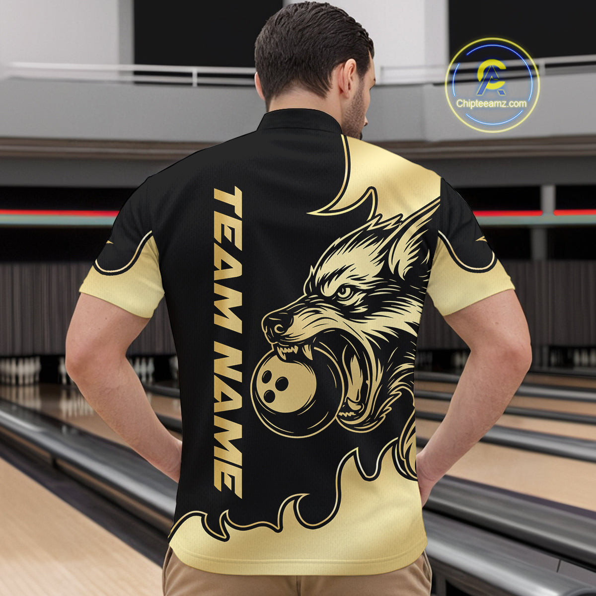 Gold Wolf Bowling Shirts for Team Women Men Custom Wolf Bowling Polo & Quarter Zip MBL194