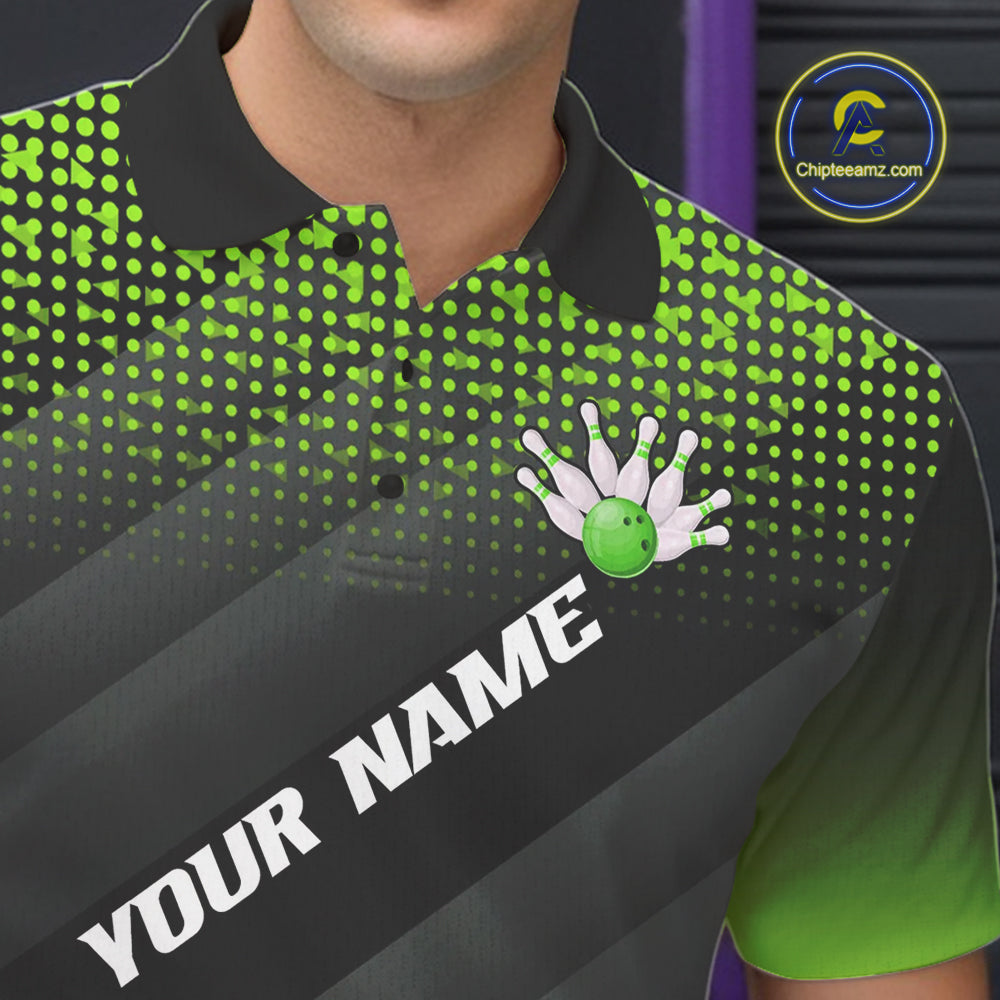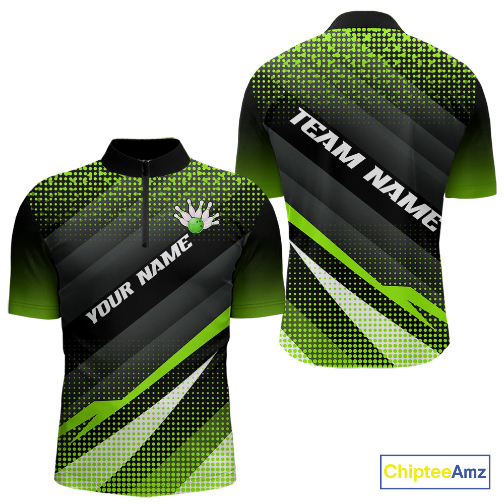 Green Bowling Custom Men Bowling Polo, Quarter zip Shirts Bowling Team Jerseys Bowling Tournament NQS10604