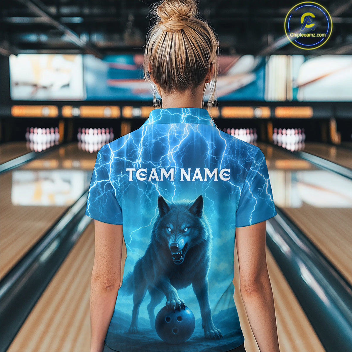 Lightning Wolf Bowling Shirts for Team Women Men Custom Blue Wolf Bowling Jerseys MBL193